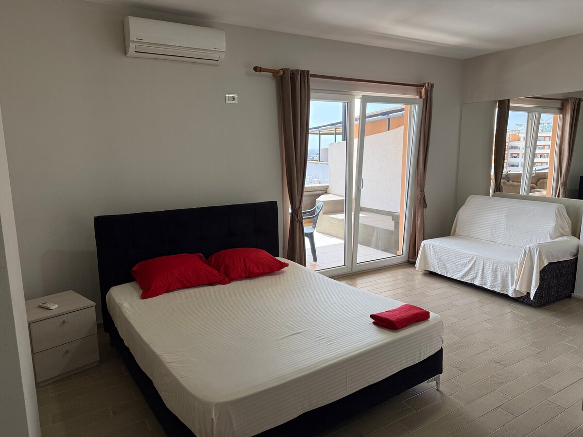 Bright private studio with open front-facing city views from your private veranda. Wake up to Tirana’s skyline and enjoy peaceful evenings above the city lights. The studio includes a private bathroom, air conditioning, small refrigerator and fast WiFi. Located in the quiet Fresku area, just 30 seconds from Bunk’Art 1 and 4 minutes from the Dajti cable car. Ideal for couples or solo travelers looking for privacy, security and beautiful urban views.