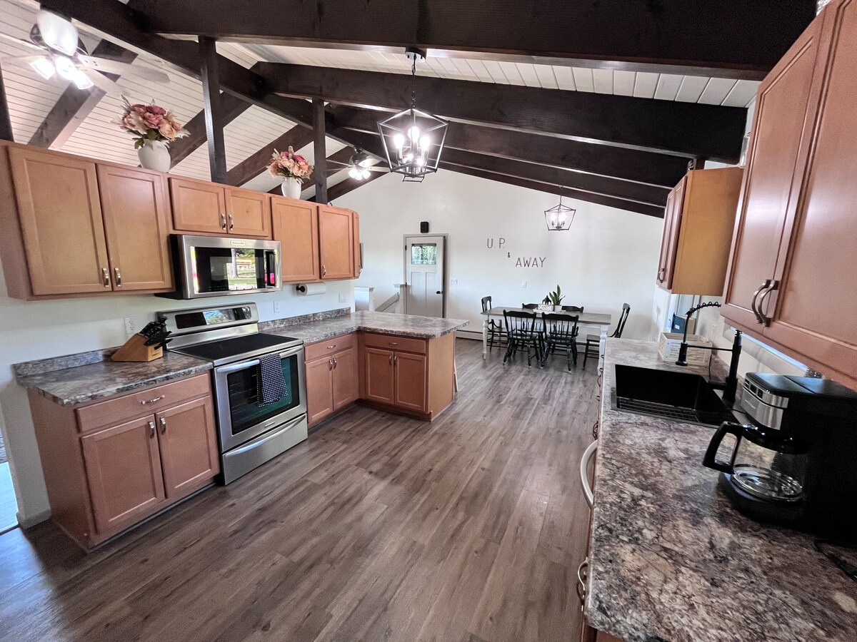 Willkommen in deinem gemütlichen Refugium. Diese charmante Unterkunft verfügt über neue, ultra-komfortable Betten, stilvolle neue Möbel und eine voll ausgestattete Küche mit einem Doppelherd und vielen Annehmlichkeiten. Genieße die Feuerstelle im Hinterhof, Garagenparkplätze, eine geräumige Dusche und eine Waschmaschine/einen Trockner. Haustierfreundlich und perfekt gelegen – nur einen kurzen Spaziergang vom Stadtpark und einer Brauerei entfernt! Weniger als eine 5-minütige Fahrt vom/zum Flughafen Ford und nur 2 Meilen vom Pine Mountain Ski Hill entfernt. Komfort, Charakter und Bequemlichkeit erwarten dich!