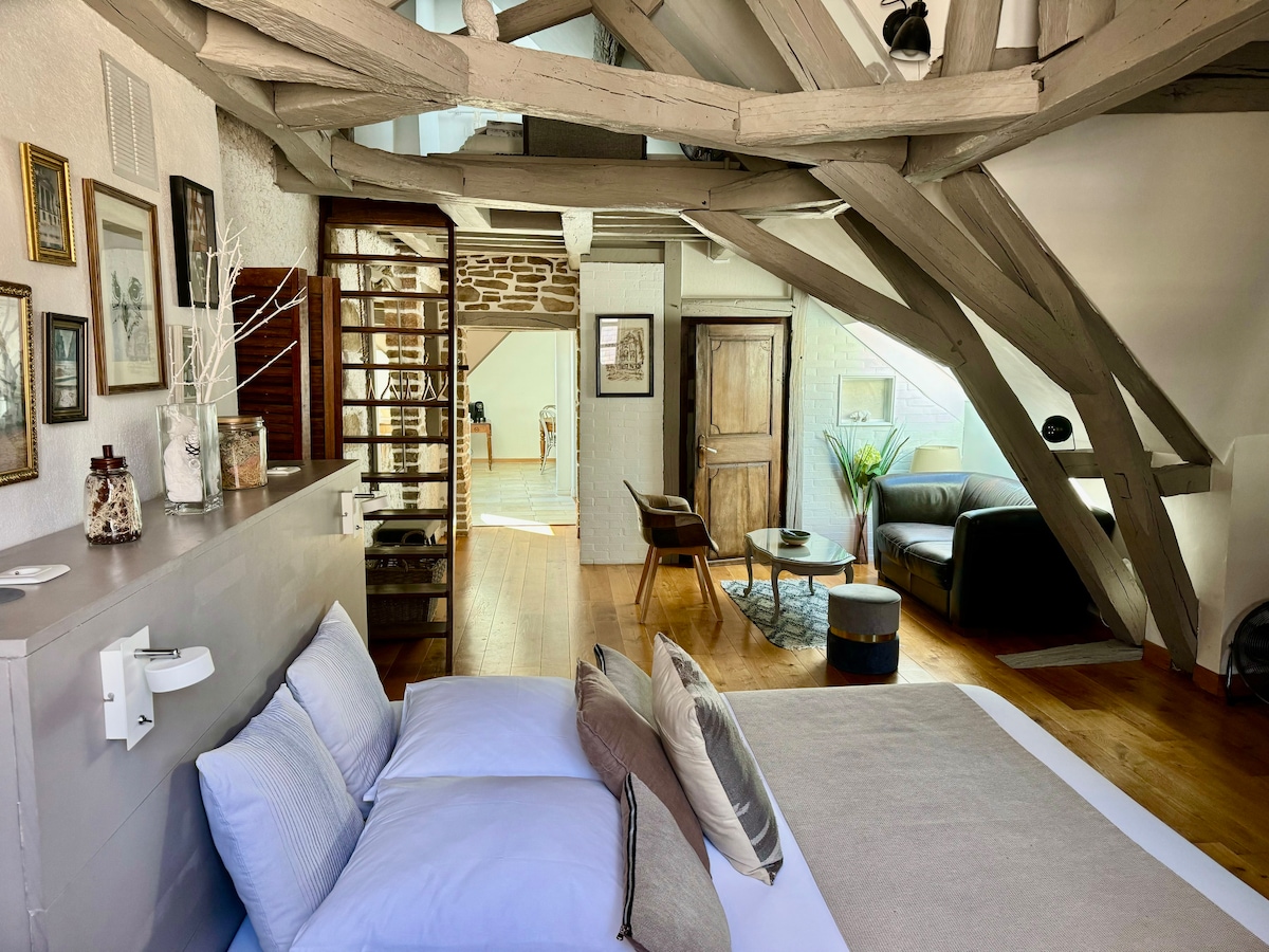 „Le Relais des Ducs“ (64 m2) befindet sich im Zentrum von Dijon (2 rue de la Préfecture). Voll ausgestattet, ist es das ideale Pied-à-terre für Alleinreisende, Paare oder Familien (von 1 bis 4 Personen). Im 3. Stock gelegen, wirst du von einer raffinierten und eleganten Umgebung verführt. Der Loungebereich bietet dir einen schönen Blick auf die Kirche Notre-Dame und ihre berühmten Wasserspeier.