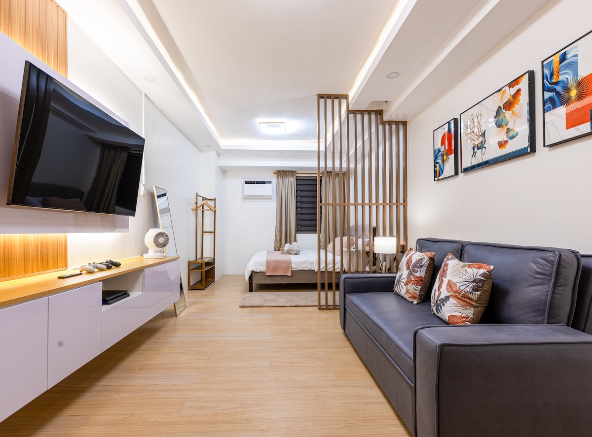 Welcome to Your Suite Escape—nestled right in the vibrant entertainment hub of Tomas Morato, Quezon City! Explore trendy cafés, indulge in local dining, or simply unwind after a long day with cozy movie nights on Disney+ and Netflix right in the comfort of your suite. Enjoy a thoughtfully designed studio with warm interiors, natural light, and hotel-style comforts. If this place is booked on your date, check out our other themed spot at airbnb.com/h/your-suite-escape-the-26th-at-tomas-morato