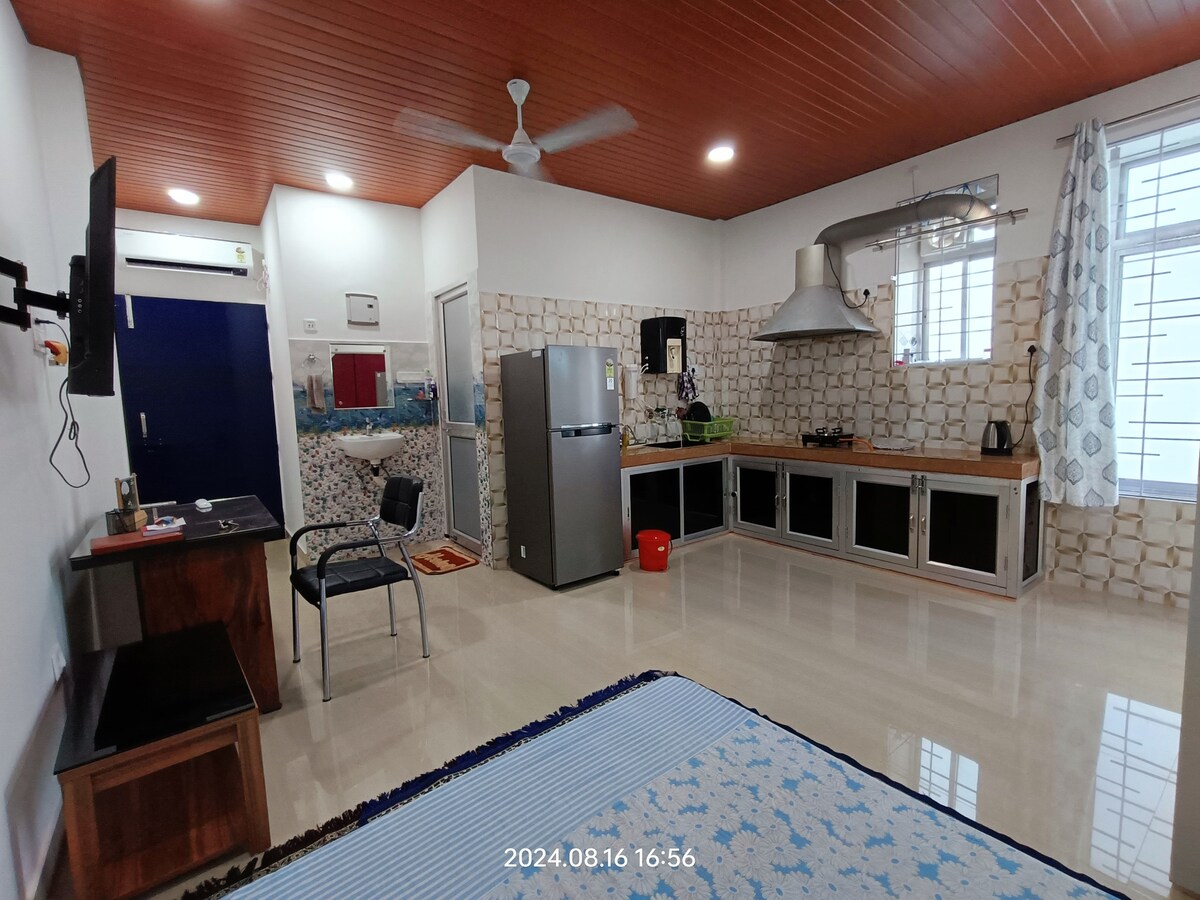 Eingebettet in eine ruhige und friedliche Umgebung bietet Aarna Homestay einen perfekten Rückzugsort für alle, die Entspannung und Komfort suchen. Ausgestattet mit allen modernen Annehmlichkeiten sorgt unsere Privatunterkunft für einen gemütlichen und bequemen Aufenthalt für Gäste. Auf der Suche nach einem ruhigen Rückzugsort oder einem Partyort ist Aarna Homestay dein ideales Zuhause in der Ferne.