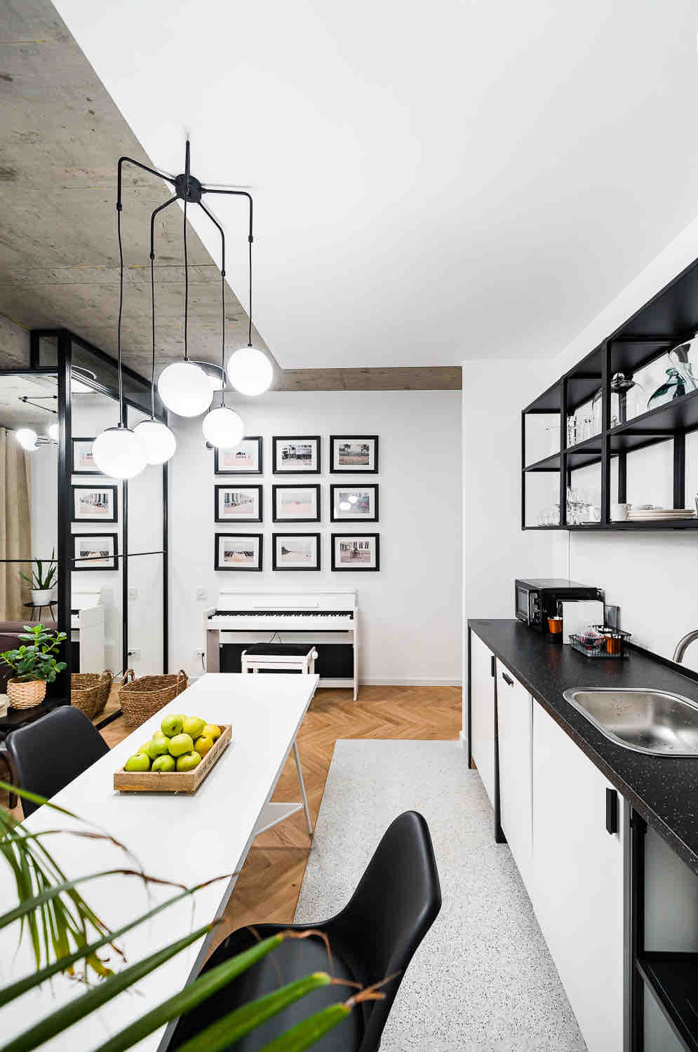 One of my dearest personal projects! This lovely one bedroom apartment is set on one of the most important boulevards in the heart of Bucharest- Calea Victoriei. It bears a lot of history, that i wanted to keep and revive. As i do in all my apartments, i kept the beautiful wooden floor, that was laid down using a technique which is not used anymore and one more element that i let you discover.That will tell you a bit about the women who lived there. Everything else has been changed completely.
