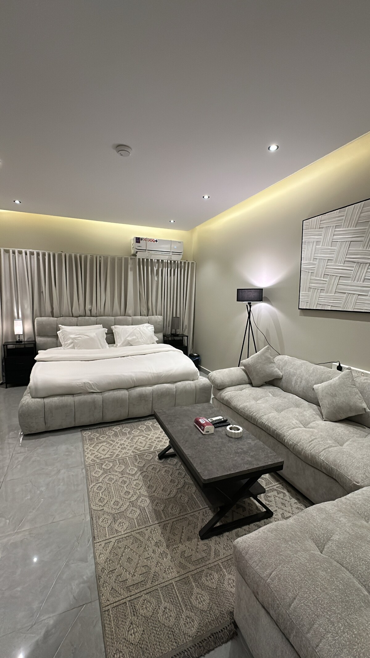 Ein geräumiges und elegantes Studio in einer privilegierten Lage im Viertel Al-Aqeeq nördlich von Riad, 4 Minuten vom Boulevard und 9 Minuten vom Wonder Garden und vielen touristischen Einrichtungen entfernt… Es ist in angenehmen Farben gestaltet und mit modernen Möbeln ausgestattet Es besteht aus einem Schlafzimmer mit einem Masterbett, einer seitlichen Sitzgelegenheit und einer voll ausgestatteten Kaffee- und Tee-Ecke. Es zeichnet sich durch seine Lage in den besten Vierteln von Riad, seine große Fläche, seine unverwechselbare Dekoration und seine vollständige Privatsphäre durch intelligenten Zugang aus. Ich wünsche Ihnen einen angenehmen Aufenthalt und Gott segne Sie, mein Gast.