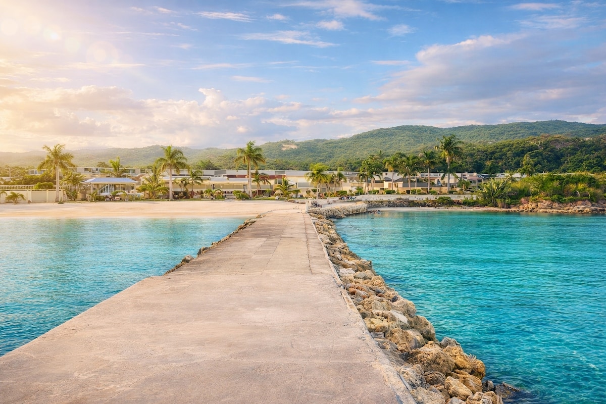 Relax in this oceanfront 1BR/1BA condo in peaceful Tower Isle, just 10 mins from Ocho Rios. Enjoy stunning sea views from your private balcony, direct beach access, a pool, A/C, Wi-Fi, and a fully equipped kitchen. Located in a gated complex. Perfect for couples, families, or remote work in paradise. Close to Dunn’s River Falls, restaurants, and local shops. Book your island escape today!