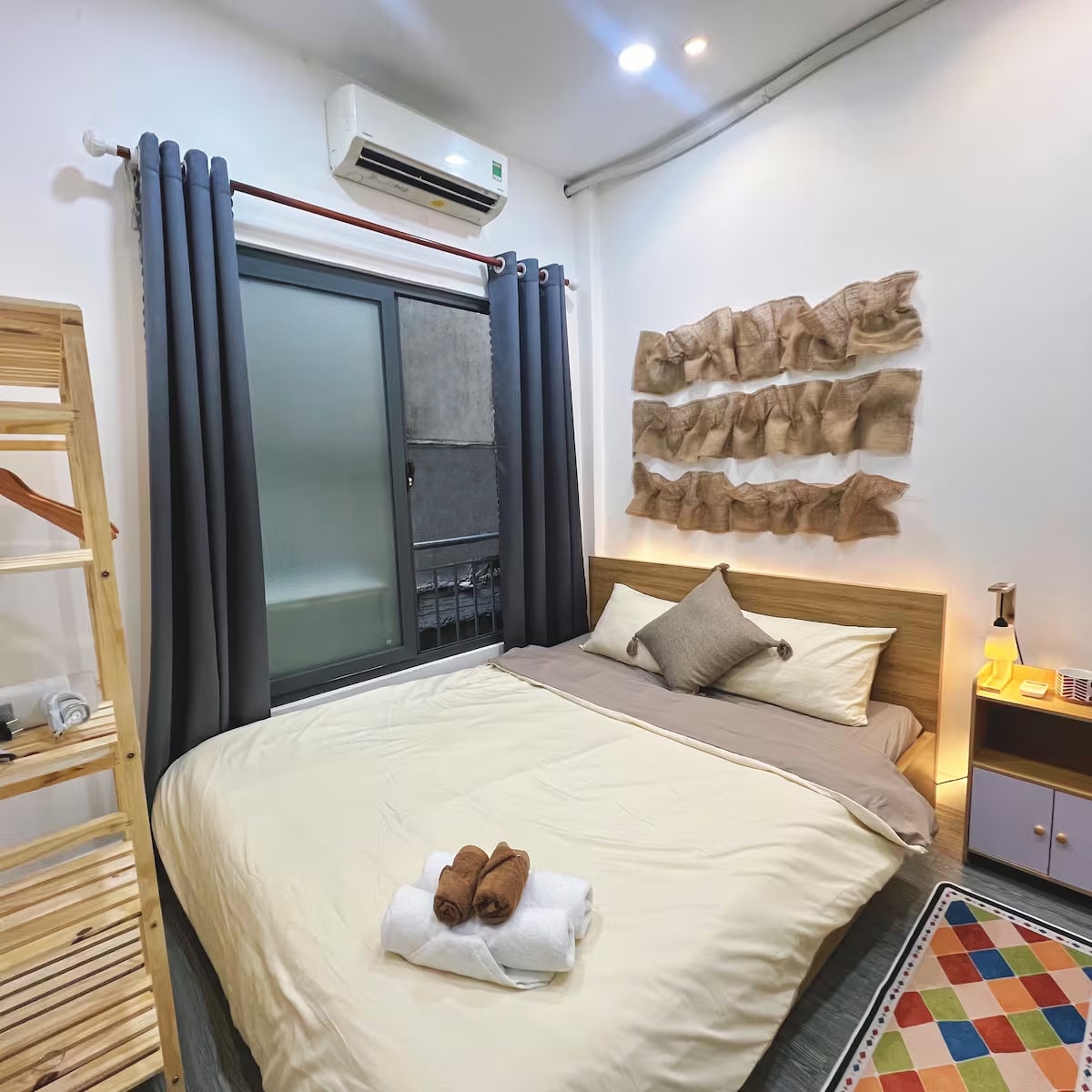 Willkommen in unserem ruhigen Zuhause, wo Einfachheit auf Komfort trifft, gestaltet in der friedlichen Wabi-Sabi-Ästhetik. Perfekt in einer ruhigen, familienfreundlichen Gegend im Herzen von Bezirk 3 gelegen, bietet unser Haus eine ruhige Zuflucht und bietet dennoch unmittelbaren Zugang zu allen Top-Attraktionen von Ho-Chi-Minh-Stadt. Ideal für Familien, Gruppen von Freunden und Geschäftsreisende, verspricht unser Raum einen gemütlichen Aufenthalt mit einem Hauch von lokalem Charme, der ruhiges Wohnen mit dem aufregenden Puls des Stadtlebens verbindet.