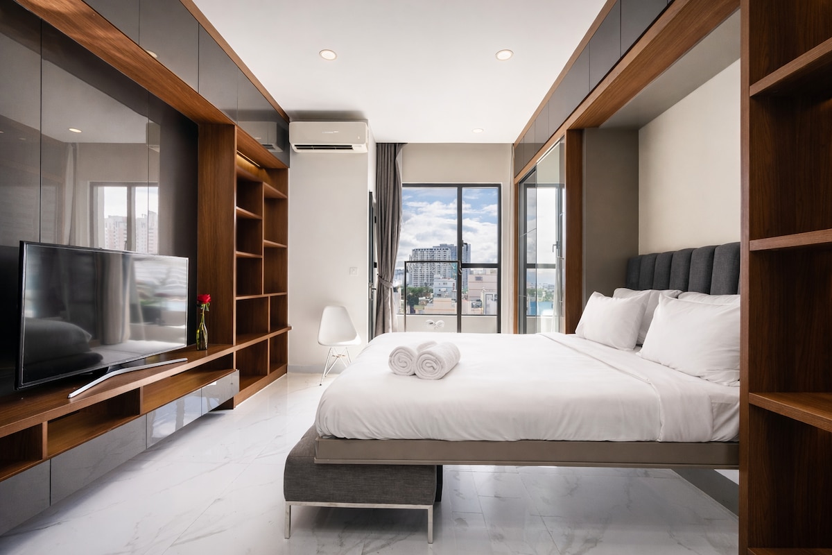 Relax & Enjoy Exclusive Perks: ★ FREE airport pick-up (3+ nights) ★ 24/7 self-check-in + Security ★ FREE 4G SIM (100GB, valid 20 days) ★ FREE 2 cleanings for weekly stays Explore Like a Local 📖 Insider guidebooks will be provided ✨ Access to exclusive tours at unbeatable prices Comfort & Convenience ★ Queen bed + Sofa bed (2m x 1.4m) ★ Fast Wi-Fi, AC & dedicated work desk ★ 43" TV for your entertainment Experience the beauty of HCM city with our team's local guides ☆☆☆