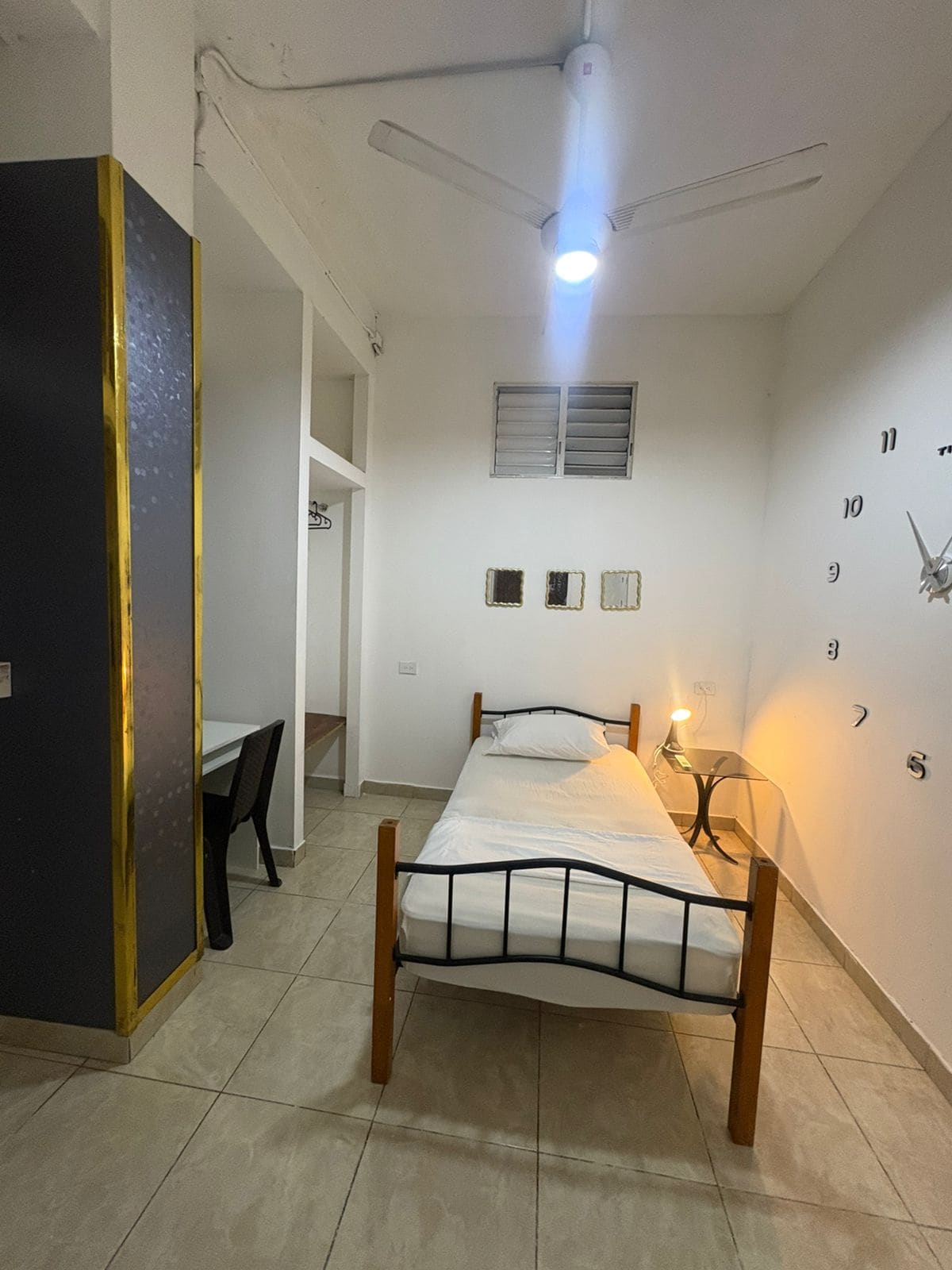 Einzigartiger Raum in einem Haus aus dem Jahr 1930 mit rustikal-industriellen Elementen. Elegante Zimmer mit originalem hydraulischen Fußboden. Großer Innenhof mit Umzäunung und elektrischem Tor. Zentral, weniger als 3 km von der Kolonialzone, 2,5 km vom Polígono Central entfernt. Krankenhaus, Wäscherei, Apotheke, Malecón 1-2 Blocks entfernt. 500-600 Meter von 2 U-Bahn-Stationen entfernt, in der Nähe von Museen und Restaurants. Aktualisierte Technologie. Intelligenter Lautsprecher. WLAN. TV mit Youtube, Netflix, PrimeVideo. Doppelbett (Größe Full).