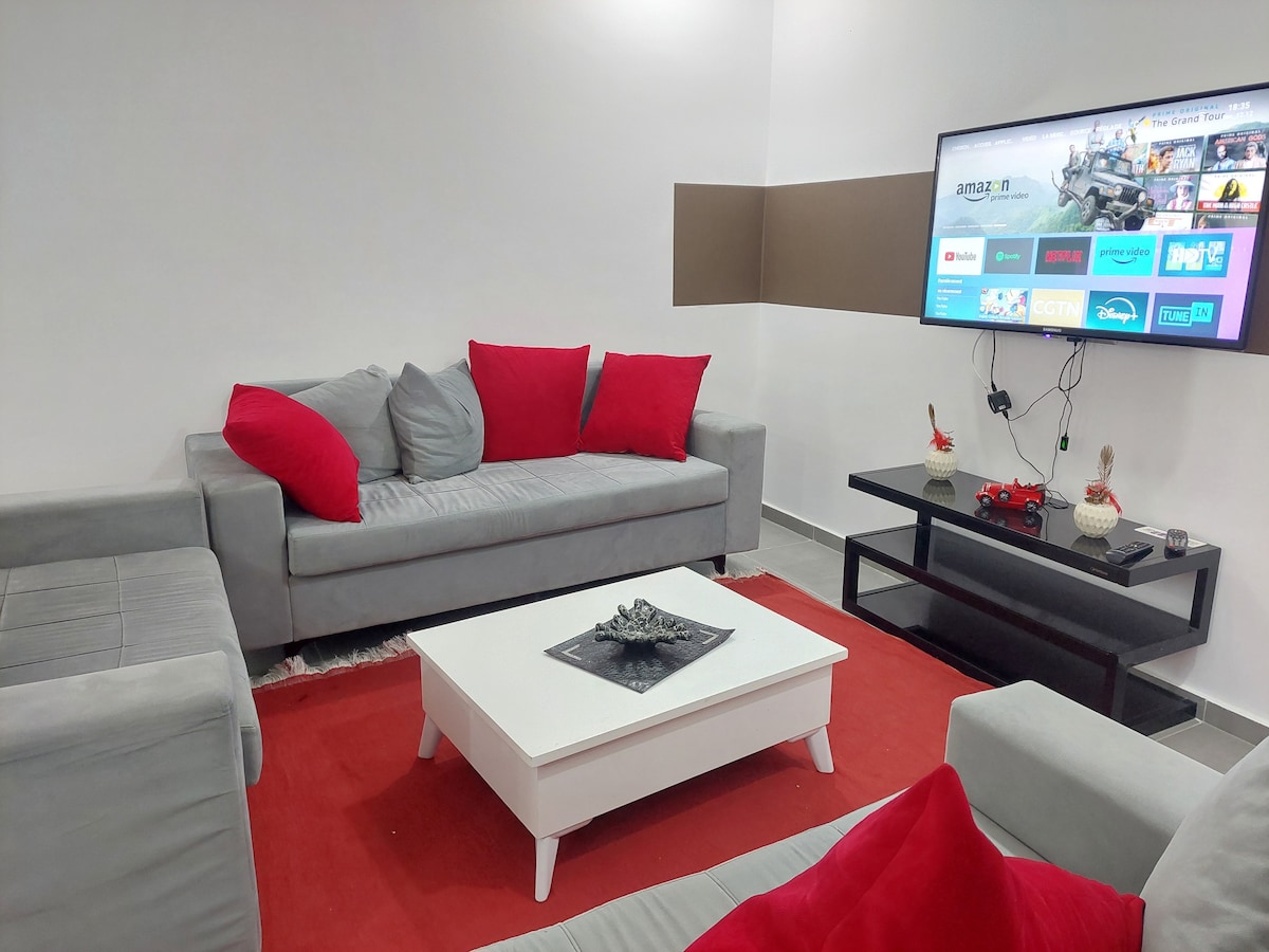 Ce logement paisible offre un séjour détente pour toute la famille, situé dans un quartier calme et sécurisé. Il se trouve à proximité des Hôtels Radisson Blue Palace Ressort & Thalasso et Ulysse Palace à 3minutes à pied seulement de l'une des meilleures plages de l’île 🏝, climatisé ( froid/ chaud), composé d’une kitchenette moderne et bien équipée ouverte sur une pièce à vivre lumineuse, ainsi que deux chambres à coucher et une salle de bain bien aménagée.