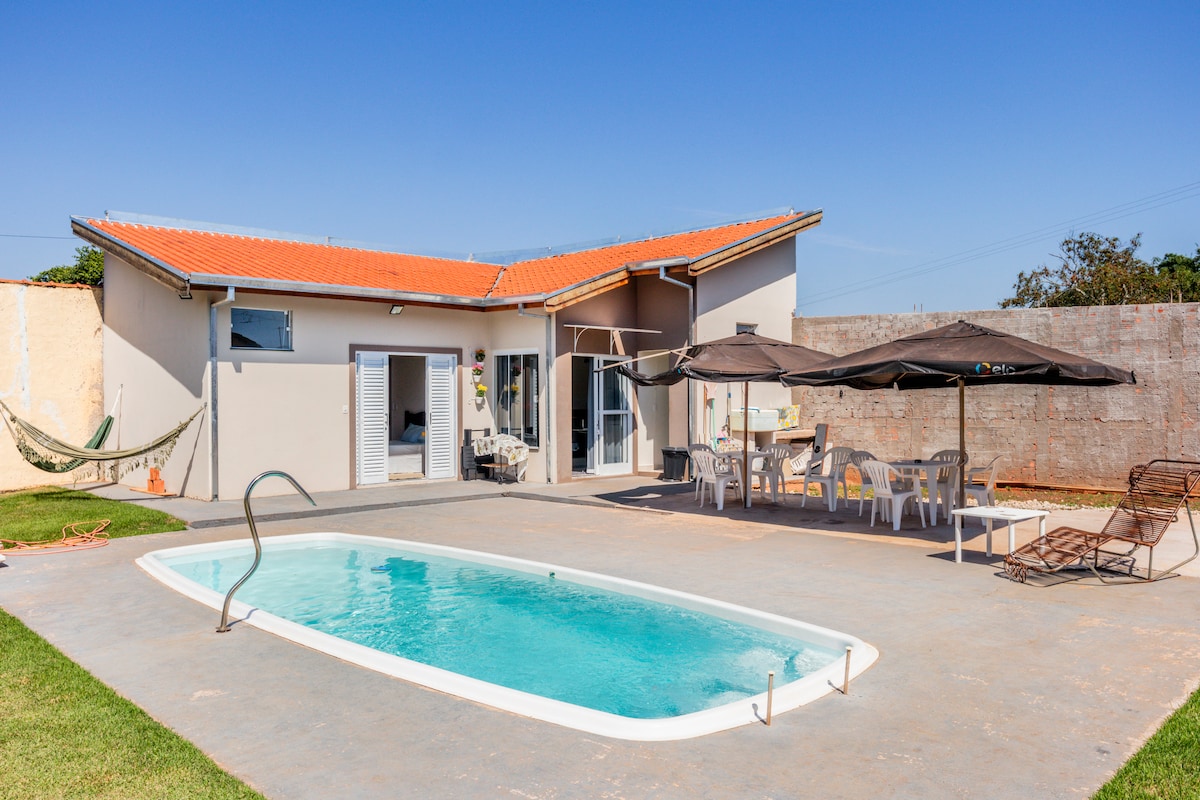 @casadamibrotas Gemütliches Haus, perfekt für Paare und kleine Familien! Pool mit Solarheizung (bis 29ºC) Grillplatz 5 Minuten vom Zentrum von Brotas! -Wir akzeptieren Haustiere jeder Größe! (Bei Haustieren bieten wir keine Bettwäsche und Handtücher an) - Schlafzimmer mit Doppelbett, Tisch und Klimaanlage -Wohnzimmer mit Schlafsofa für 2 Personen, Smart-TV - Voll ausgestattete Küche (wir haben Tassen, Snacks usw.) -Spannung 110 und 220! - Garage für 2 Autos! - Hohe Mauern mit einem herrlichen Garten!