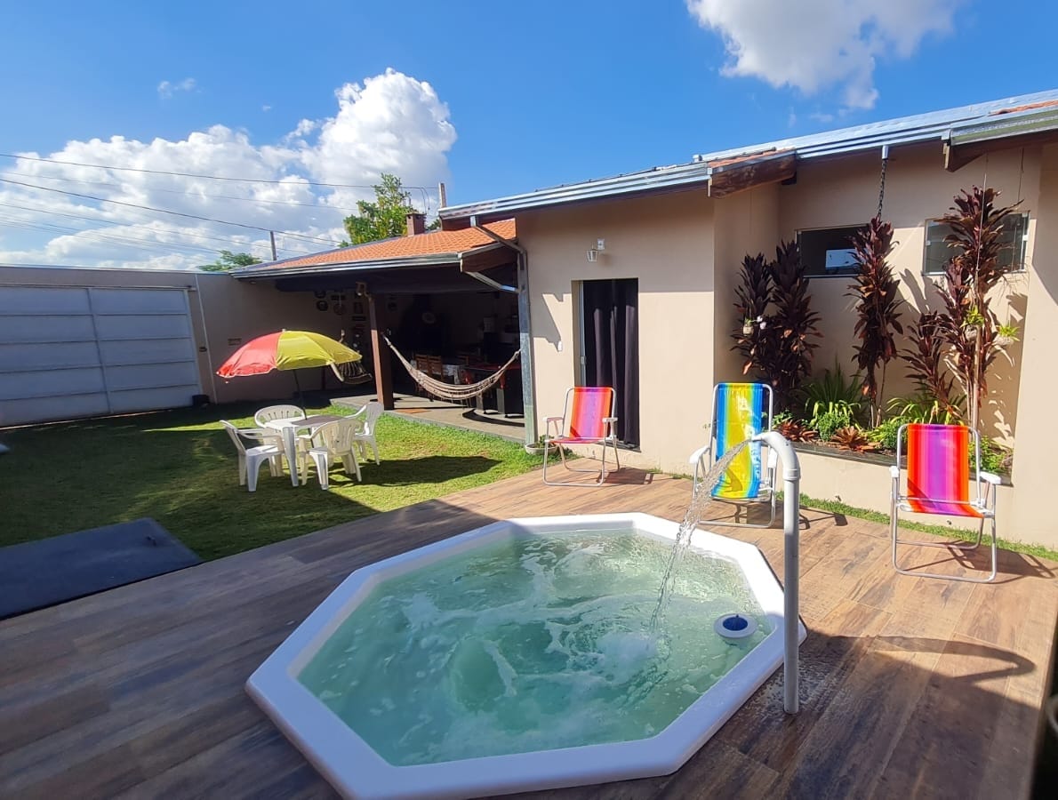 Acomodação para até 12 pessoas. ATENÇÃO CHECK-IN a partir das 15:00 hrs. CHECK-OUT 12:00 hrs. Área Externa: • PISCINA AQUECIDA ( Espaço Adulto 5x3x1.40 tem degraus e Infantil 2x2x0.60 ) • CHURRASQUEIRA com a opção de GRILL ELETRICO • COZINHA EXTERNA • BANHEIRO E LAVABO • DUCHA • MESA DE SINUCA • CERVEJEIRA (Freezer para Cerveja) • ESPAÇO LAZER • TV • REDES DE DESCANSO GARAGEM para 02 carros. Não possuímos carregador para carro elétrico e nem autorizamos carregar na residência.