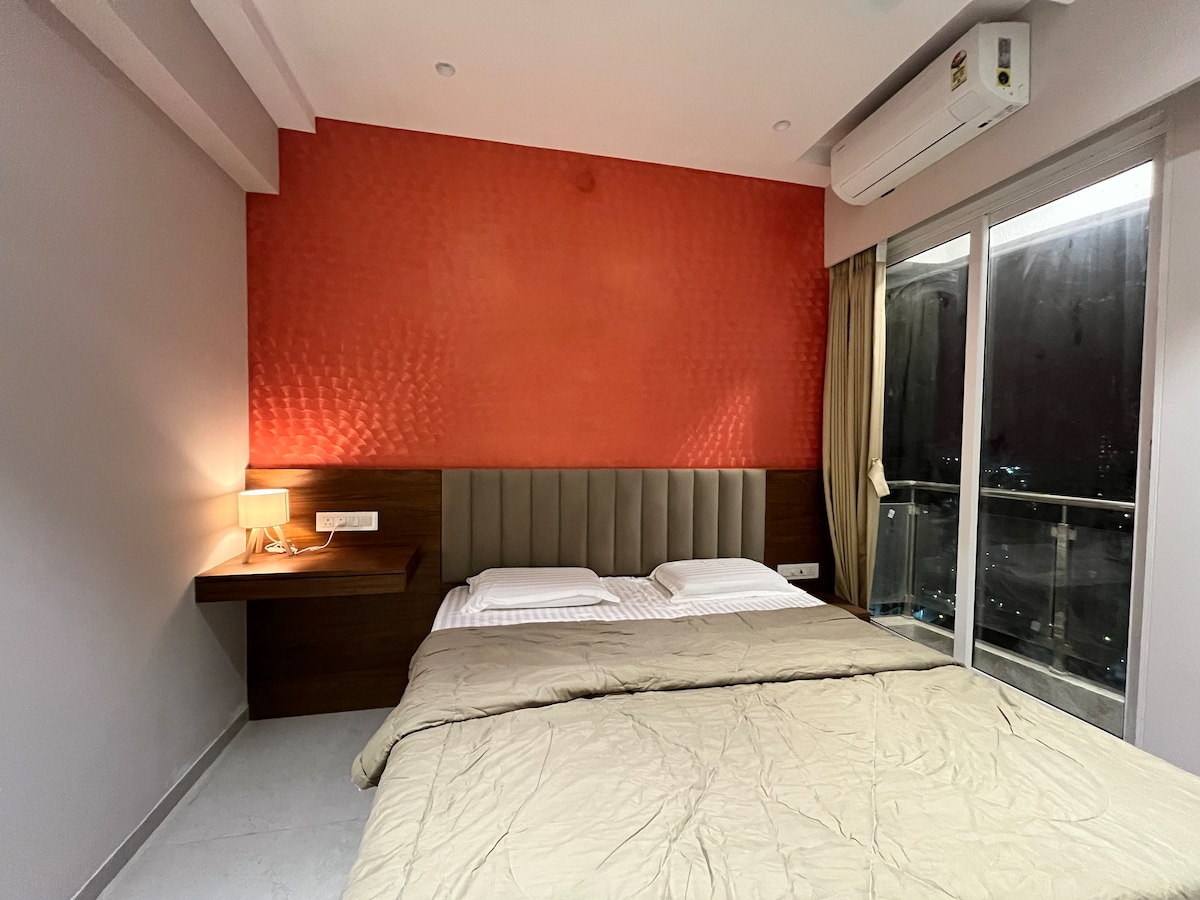 Luxuriöses Studio mit gemütlichem Interieur in Hiranandani Estate mit atemberaubendem Bach- und Bergblick Ausstattung • Pärchenfreundlich • Queensize-Bett mit weicher Bettwäsche und Kissen • Smart-TV, Highspeed-WLAN und Klimaanlage • Voll ausgestattete Küchenzeile mit Kühlschrank, Wasserkocher und Utensilien • Modernes Badezimmer mit hochwertiger Ausstattung und Warmwasser • Privater Balkon mit Panoramablick • 24x7 Sicherheit, Aufzüge und sicherer Zugang Ideal für Alleinreisende, Paare, Geschäftsreisende oder kleine Familien