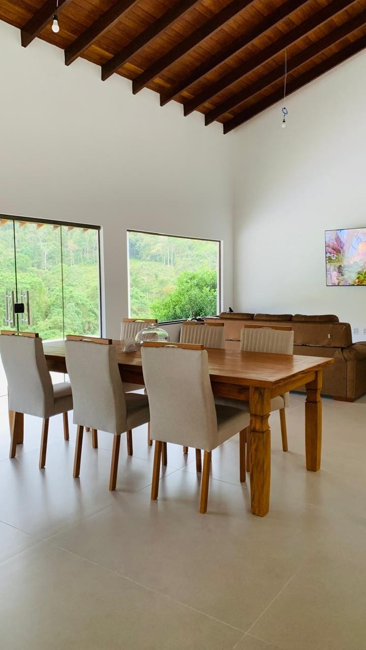1 Stunde von Vitória und 20 Minuten von der Innenstadt von Domingos Martins entfernt, wirst du an einem ruhigen Ort sein, umgeben von Natur, mit üppiger Fauna und Flora. Der Jucu River verläuft durch die Unterkunft. Die Wohnanlage verfügt über Freizeitbereiche wie Wanderwege, einen Fußballplatz, einen Swimmingpool, einen Spielbereich, WLAN und viele andere Annehmlichkeiten. Das Besondere an diesem Ort ist jedoch das Orchester der Vögel zusammen mit dem Rauschen des Flusses und der Stille von allem anderen. Bitte beachte: Wir stellen keine Bettwäsche und Handtücher zur Verfügung