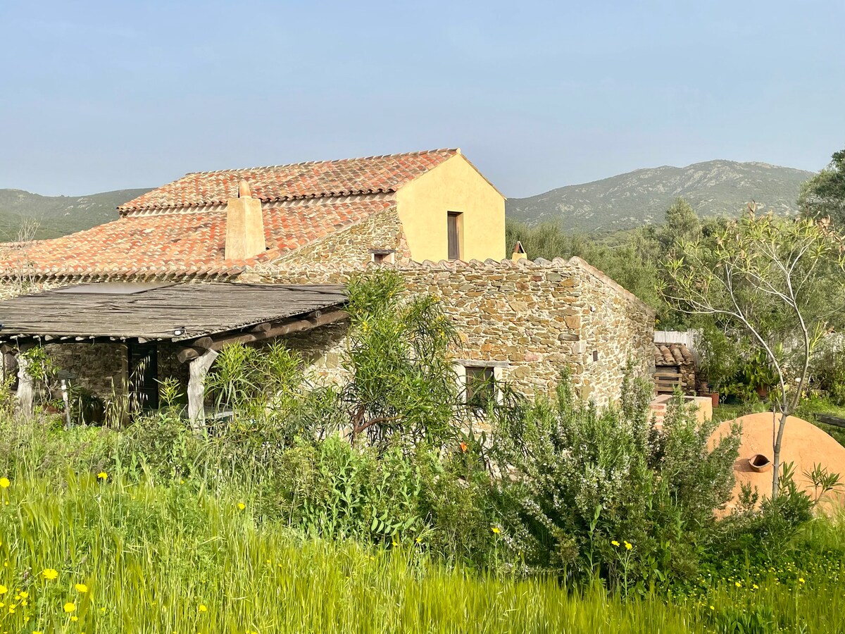 Discover a delightful countryside retreat, nestled in the heart of Sardinia's rustic charm. Experience the serenity of a traditional stone house steeped in Sardinian heritage. Featuring a single bedroom, spacious living room and rustic kitchen reflecting traditional architecture. Indulge in al fresco dining with our barbecue and explore the vast Mediterranean garden surrounded by olive trees to reconnect with nature. Conveniently located just minutes away by car from several stunning beaches.