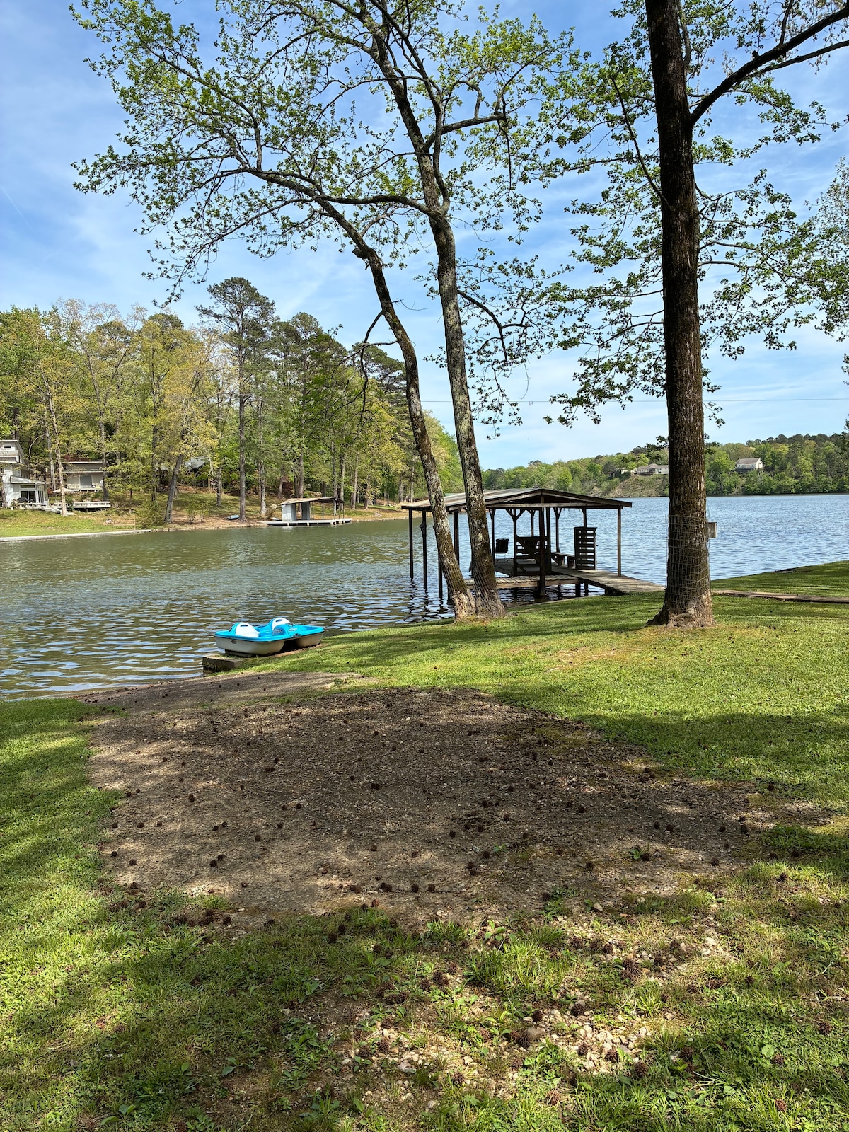 Hideaway lakefront cabin 3 bedrooms, 2 bathrooms has 400ft. shoreline in the country but only approx. 4 miles to the city limits of beautiful Hot Springs, AR. Pets are allowed $18.00 per pet, per night. Enjoy lower prices as lake lowered 5ft. starting November-March. March 1st lake will start being raised approx. 6 inches each day until complete. Won’t be able to fish lake comes back up (for sure can by March 15th) come enjoy our beautiful, cedar cabin with wonderful views as prices are down