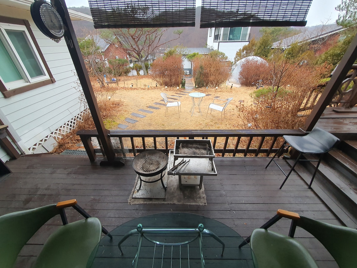 숲세권 독채별장 촌캉스 내 집처럼 불멍,따사한 투명 텐트에서 별도보고 조용히 힐링힐링!