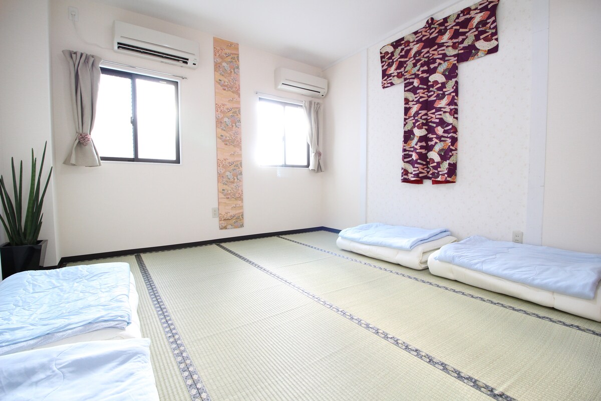 Du teilst nichts mit anderen, das ganze Zimmer, wie auf den Fotos gezeigt, wird vollständig von euch 5 genutzt. - Der nächste Bahnhof ist der Bahnhof Nipponbashi (Osaka), 4 Minuten zu Fuß. -Walk12 Minuten zum Bahnhof Namba und zum Bahnhof Uehonmachi. - Geh fünf Minuten zum Bahnhof Tanimachi KyuChoMe. - zu Fuß innerhalb von 5-12 Minuten erreichst du den Kuromon-Markt, Dontobori, Shinsaibashi, Nipponbashi Denden Town. Sennichimae . BIC CAMERA.Namba Station.