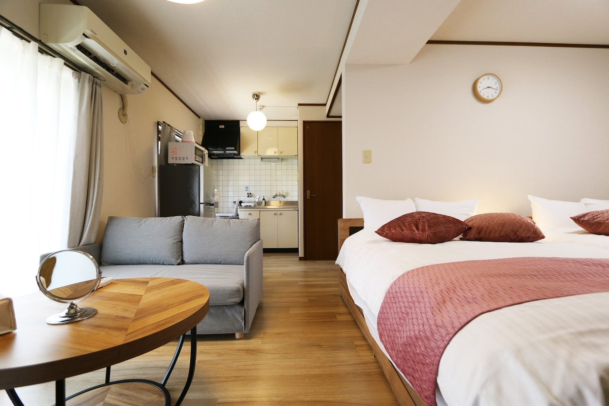 [b&Namba 3rd Shop] Das Hotel liegt in Naniwa-ku, Osaka, der nächste Bahnhof ist „Daikokucho Station“, in der Nähe des Einkaufszentrums, in der Nähe von Namba und sehr bequem für den Transport.Die U-Bahn bietet direkten Zugang zu den wichtigsten Sehenswürdigkeiten von Osaka, wie Dotonbori, Nipponbashi, Shinsaibashi, Tennoji, Tsutenkaku usw., und es ist auch sehr bequem, zum Flughafen Kansai zu gelangen, was es zu einem idealen Ausgangspunkt für die Erkundung von Osaka macht. Umgeben von einer ruhigen und friedlichen Wohngegend, gute Sicherheit, saubere Umgebung, geeignet für Familien, Paare, Freunde, um zusammen zu bleiben.Es gibt 24-Stunden-Minimärkte, Cafés und Einkaufsmöglichkeiten in Gehweite.Darüber hinaus gibt es in der Nähe authentische japanische Restaurants und altmodische Kantinen, sodass du die authentische lokale Esskultur erleben kannst, ohne weit zu gehen. Das Zimmer ist eine neu renovierte Wohnung mit einem modernen und japanischen Stil, geräumig, mit einem eigenen Bad und WC, geeignet für bis zu 4 Personen gleichzeitig.Das ganze Haus ist mit Highspeed-WLAN, Badewanne, Waschmaschine, Küche und anderen Wohneinrichtungen ausgestattet. Alles über das Reisen in Japan, wir werden dir begeistert antworten!