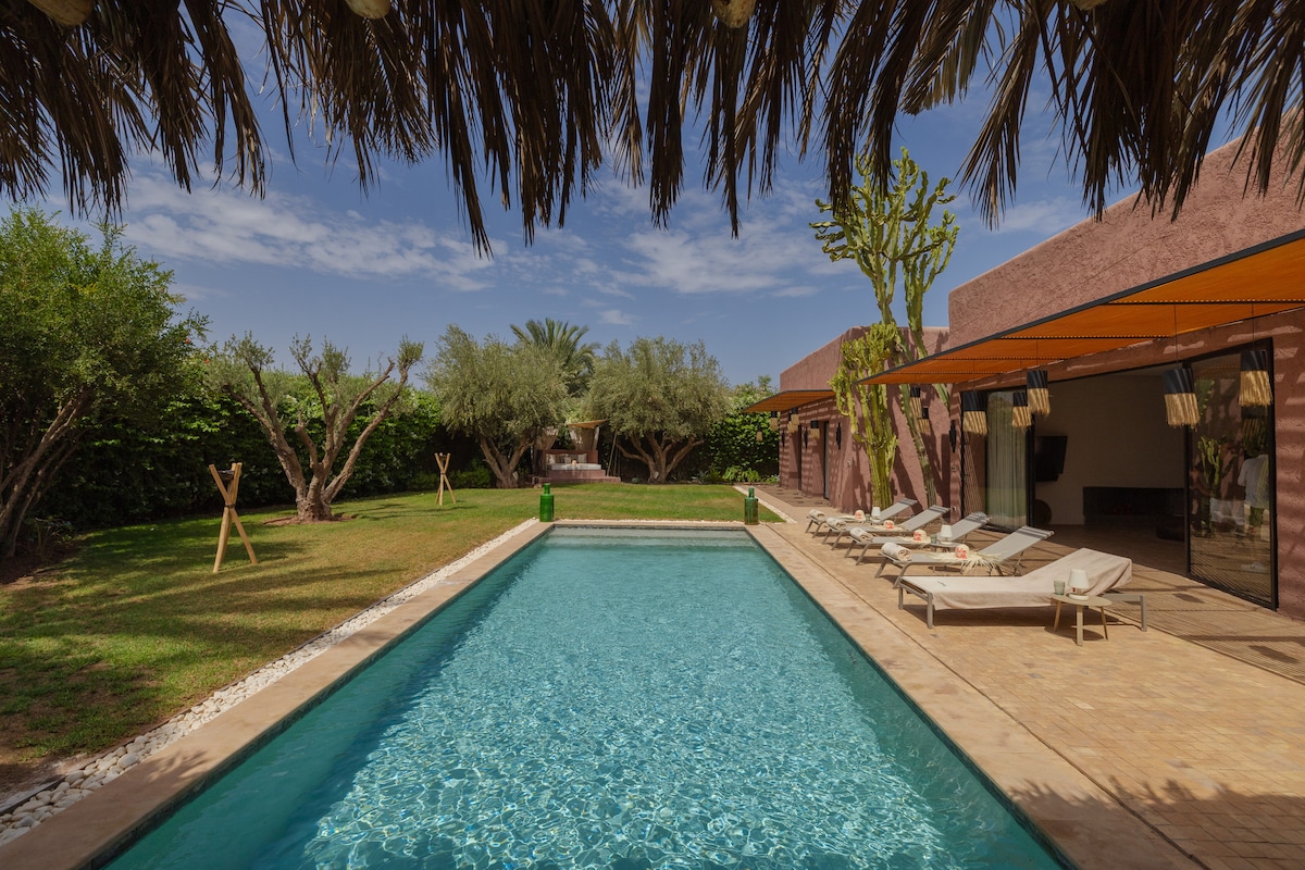 A peaceful family escape just 20 minutes from Marrakech. Tucked away in nature, this charming villa offers complete privacy, no overlooking, and a heated pool that everyone can enjoy year-round. It’s the perfect place for families to relax, play, and spend quality time together surrounded by an amazing landscape. ✔ Free Daily housekeeping and chef service ✔ 3 bedrooms plus Hammam ✔ Comfortable living area ✔ Fully equipped kitchen ✔ Beautiful garden with pool, pergola and lawn ✔ Private parking