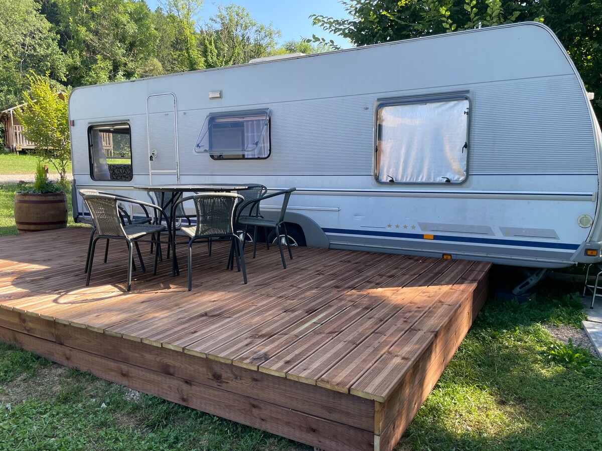 Sie werden diesen einzigartigen und romantischen Kurzurlaub in einem gemütlichen und komfortablen Wohnwagen mit Küchenzeile, Bad und WC lieben. Wir befinden uns im Herzen eines Dorfes in der Natur in der Nähe von Besançon 20 Min., Autobahnkreuz A36 15 Min., Vesoul 30 Min. Ideal für Wochenendruhe, Wandern oder Mountainbiken.