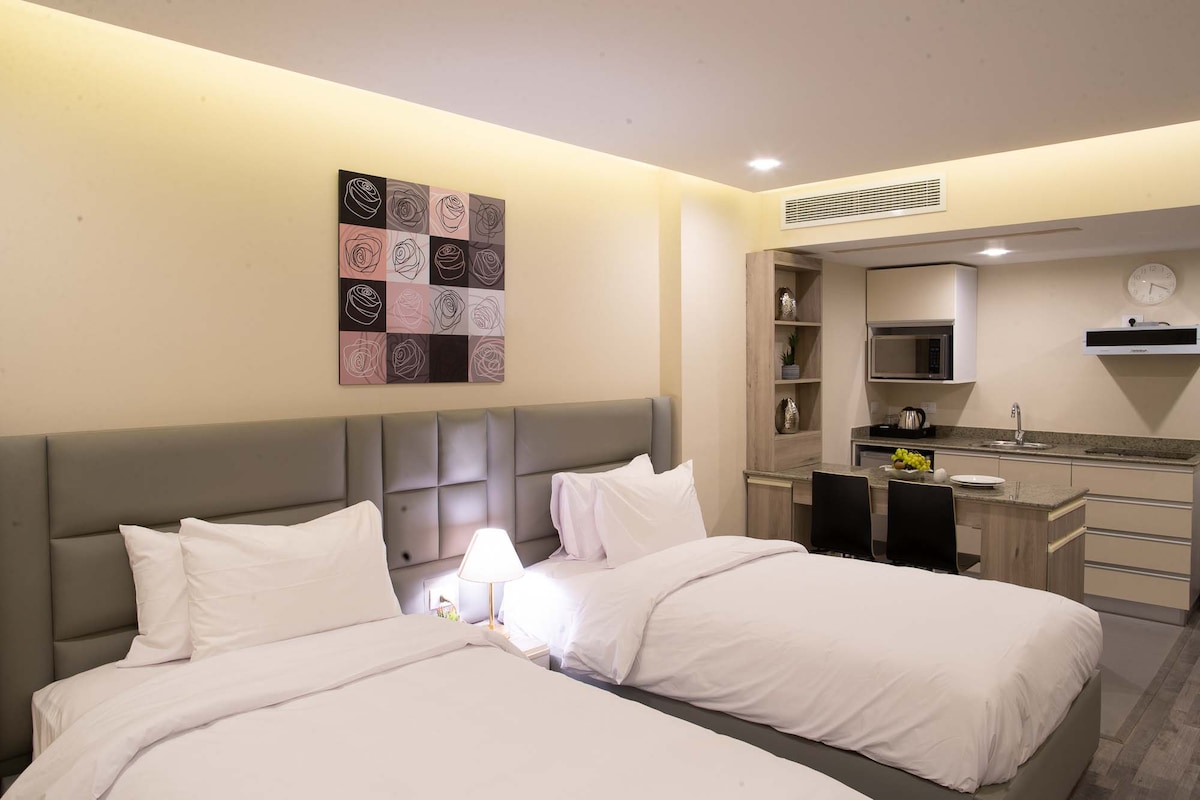 Genieße einen komfortablen Aufenthalt in Desert Spirit DAS ZIMMER VERFÜGT ÜBER 2 Einzelbetten, Klimaanlage, Heizung, Sat-TV, Minibar und Grundausstattung wie Schreibtisch, Spiegel, Schließfach und Kleiderbügel. DAS BADEZIMMER IST AUSGESTATTET handtücher, Shampoo, Duschgel, Handseife und ein Föhn. STARTE TÄGLICH IN DEN TAG hauswirtschaft, Mineralwasser, Tee, Nescafé und Zucker. KOSTENLOS GENIESSEN zugang zu unserem Panorama Pyramids View Rooftop Restaurant jederzeit. Meine Mitarbeiter stehen dir rund um die Uhr zur Verfügung, um deine Bedürfnisse zu erfüllen.