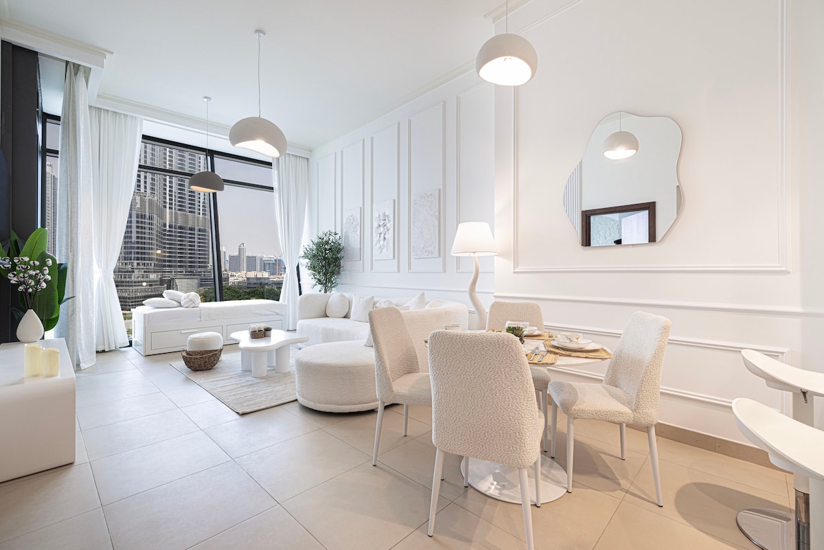 Erlebe stilvollen Komfort im Herzen der Innenstadt von Dubai mit atemberaubendem Blick auf den Burj Khalifa und die tanzenden Brunnen! Nur 5 Gehminuten von der Dubai Mall entfernt, ist unser liebevoll kuratiertes Apartment mit 2 Schlafzimmern und 2 Badezimmern perfekt für einen erholsamen, stressfreien Aufenthalt geeignet. Dies ist das persönliche Zuhause unserer Familie, das mit Sorgfalt und Liebe zum Detail entworfen wurde. PS: Kostenlose wöchentliche Reinigung und Desinfektion stehen immer an erster Stelle!
