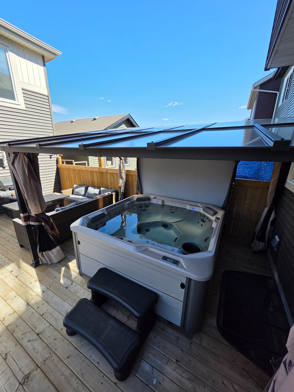 Your Nordic Spa-Inspired Escape—Perfect for Groups & Local Staycations! What We Offer: ✔ Private 6-Person Hot Tub ✔ Pet Friendly – $30/night/pet ✔ 🗲 Fast WiFi – Great for Remote Work ✔ Gas Fireplace & A/C ✔ Patio w/ Fire Table + BBQ ✔ Fire Pit ✔ Great for Longer Stays & M2M Rentals ✔ Fully Stocked Kitchen ✔ In-Suite Laundry ✔ Foosball Table ✔ Secure 2-Car Garage ✔ Netflix ✔ Walking Trails Nearby ✔ 10 Mins to DT Unplug, reconnect & soak it all in. Book your Nordic-style retreat today!