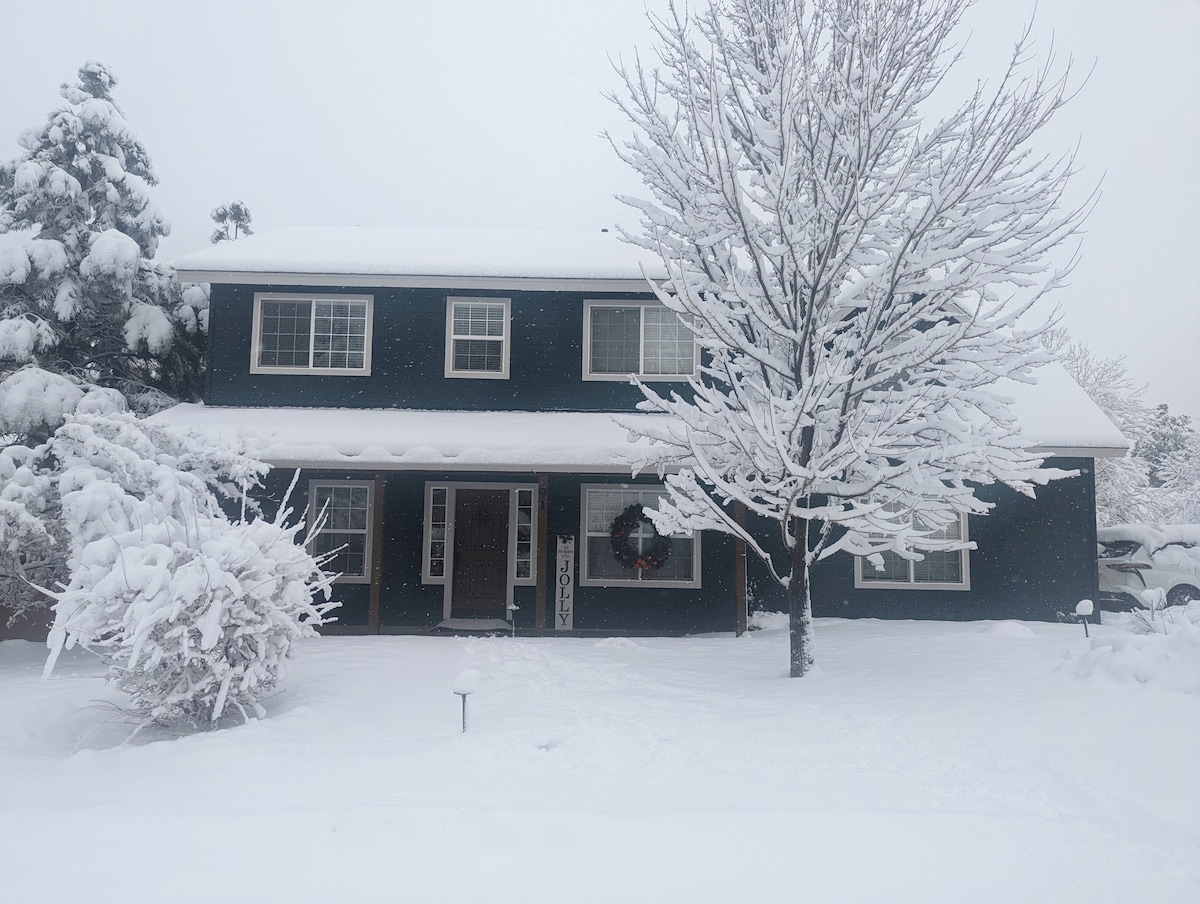 Genieße den Luxus dieses neu aufgeführten, stilvollen Hauses in der Nähe der Innenstadt von Flagstaff! Mit lebendigem, auffälligem Dekor und Bettwäsche fühlst du dich im Handumdrehen rundum wohl! Trainiere in unserem Heim-Fitnessstudio mit kostenlosen Hanteln und Cardiogeräten! Unser komplett eingezäunter Hinterhof bietet deinen Kindern und Haustieren viel Platz zum Herumlaufen! Genieße den Nachthimmel auf unserem Sitzbereich im Freien; perfekt für eine Nacht unter dem Sternenhimmel! Filmabende kuschelig neben dem Innenkamin! Dein Ziel wartet auf dich!