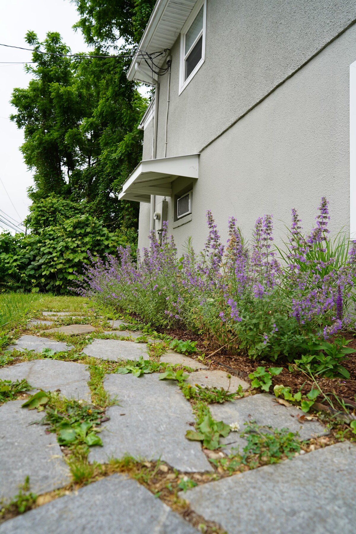 Quiet West Wing of my home, was newly renovated February 2020. The West Wing has a private entrance set in a mature garden. Two bedrooms upstairs sleep up to four people. One w/queen size bed and views of the garden.The 2nd has 1 full and 1 twin bed, plus walkout balcony. Each floor has a full bath. The 1st floor has a combined living room/dining area with a counter, bar sink, microwave, coffee maker, toaster oven andTV. Pet dogs only are welcome. The cleaning fee is included in the base price