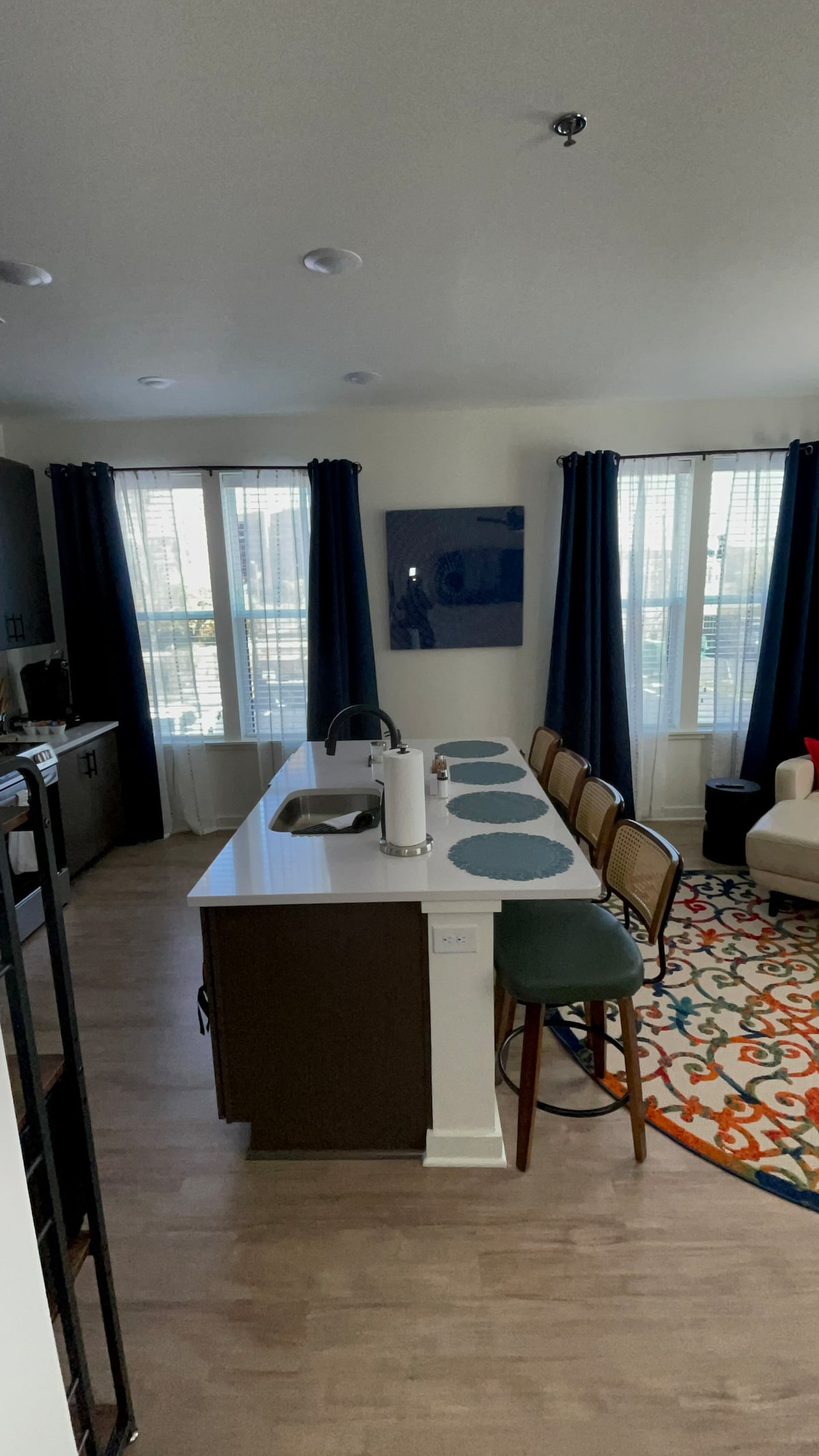 Diese luxuriöse Wohnung ist perfekt für reisende Krankenschwestern, Fachleute, Alleinreisende oder Paare. Die voll ausgestattete Küche verfügt über eine Heißluftfritteuse, einen Schmortopf, eine Kaffeebar und eine Bartesian-Maschine, damit du dich wie zuhause fühlst. Der Apartmentkomplex bietet erstaunliche Annehmlichkeiten, darunter eine Dachterrasse, zwei Innenhöfe, einen Pool, einen Yoga-Raum, ein Fitnesscenter vor Ort und einen modernen Co-Working-Space. Tritt ein in diesen voll möblierten, gehobenen Raum, in dem jedes Detail für deinen Komfort ausgerichtet wurde.