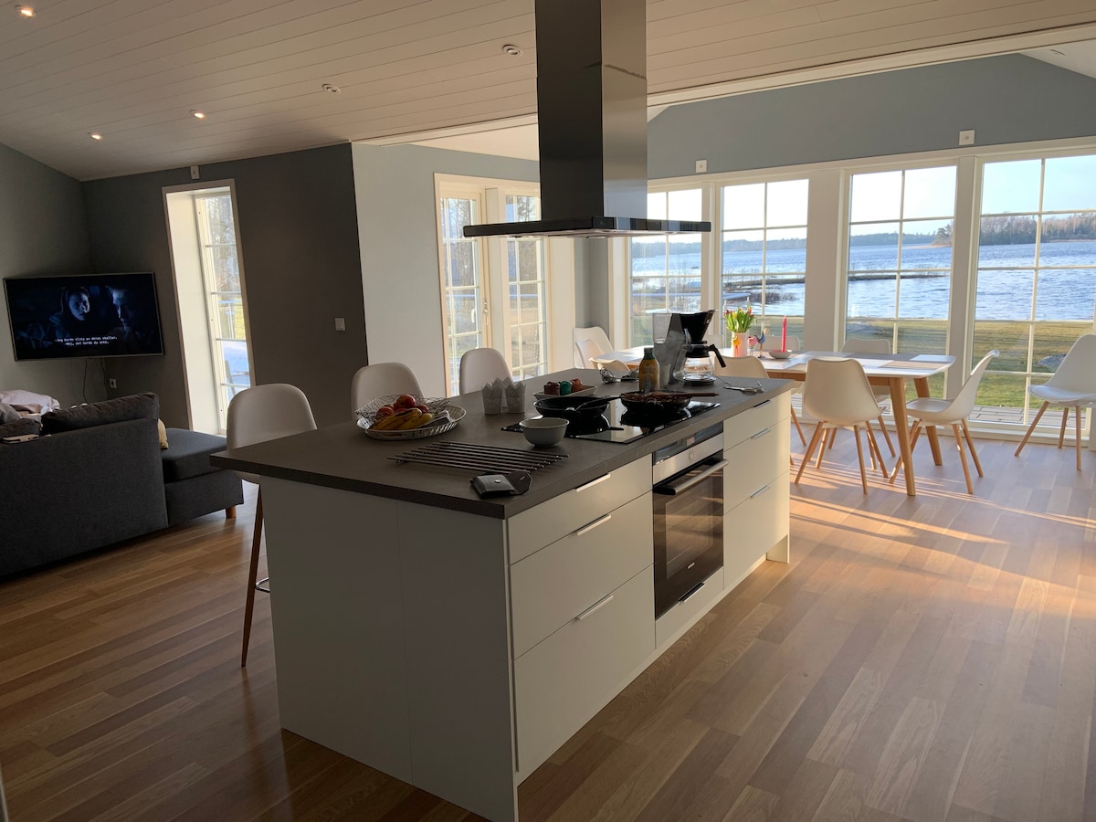 Dieses neu gebaute Ferienhaus mit modernem Interieur befindet sich auf einer Klippe direkt am Meer. Der Blick über das Meer ist erstaunlich, wobei die Sonne über dem Archipel untergeht. Perfekter Aufenthalt für Sommerferien, Naturerkundungen, Angeln oder einfach nur für einen erholsamen Rückzugsort. Ein Spa bei Sonnenuntergang auf den Felsen kann gegen eine zusätzliche Gebühr gebucht werden, sowie Bettwäsche, Handtücher und Badewanne. Vor Ort picup für Robben-Safari/Tauchtouren/Bootsfahrten/RIB-BOOTSTOUR/Jetski/Flyboard/Jetpacking/Tubing/Mega-SUP usw.