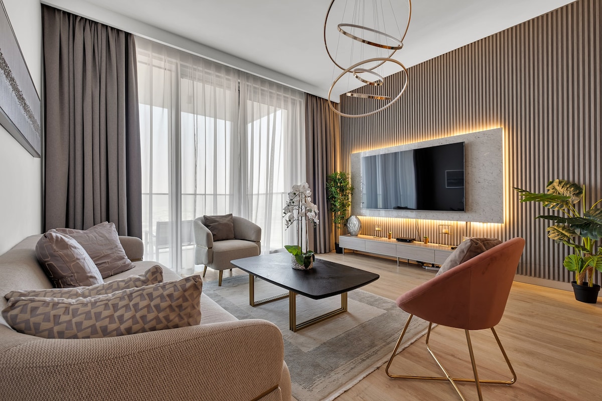 Discover the allure of Palace Residences, in Dubai Creek Harbour, through our elegant 1-bed apartment. Designed for comfort and great location, this apartment offers a pleasant stay in one of Dubai’s most sought-after neighborhoods. Guests enjoy exclusive 20% discounts on dining and selected services at the luxurious 5-star Palace Dubai Creek Harbour hotel, offering a true resort-style experience during your stay. *There may be construction activity in the surrounding area.