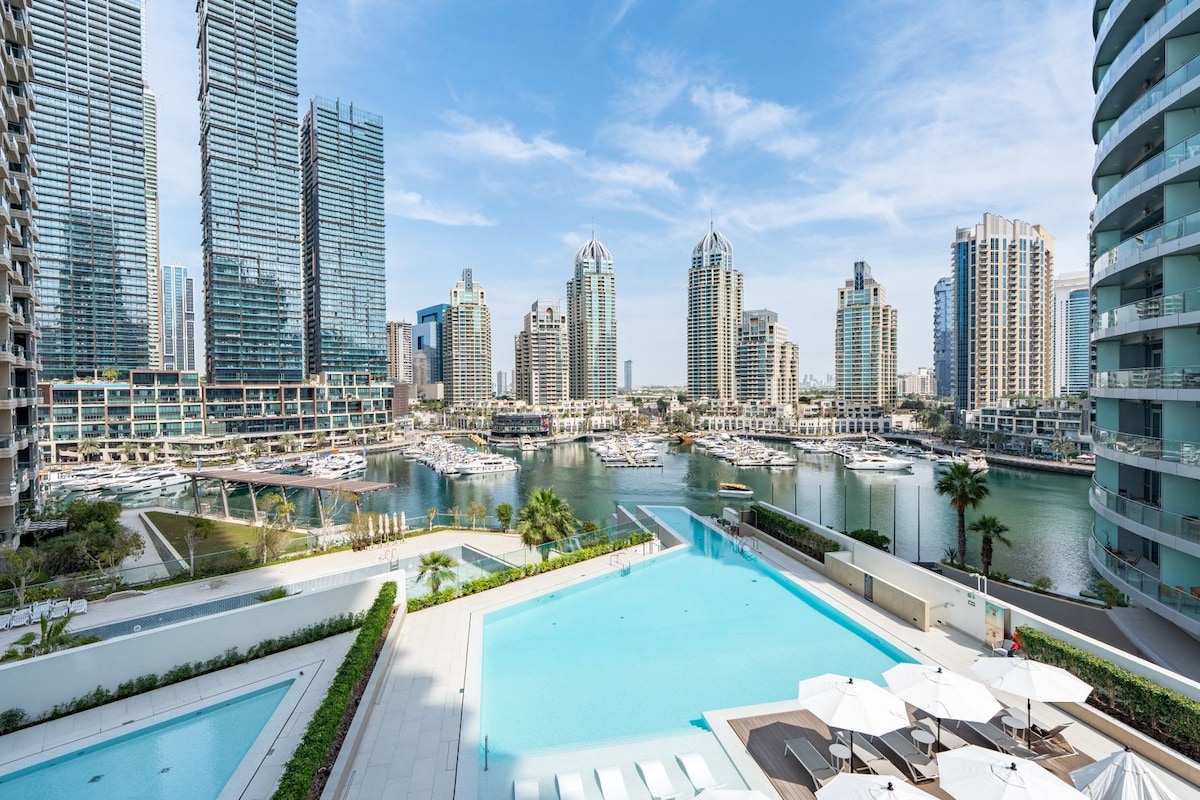Luxus 1BR Apt | LIV Marina | Direkter Blick auf den Yachthafen