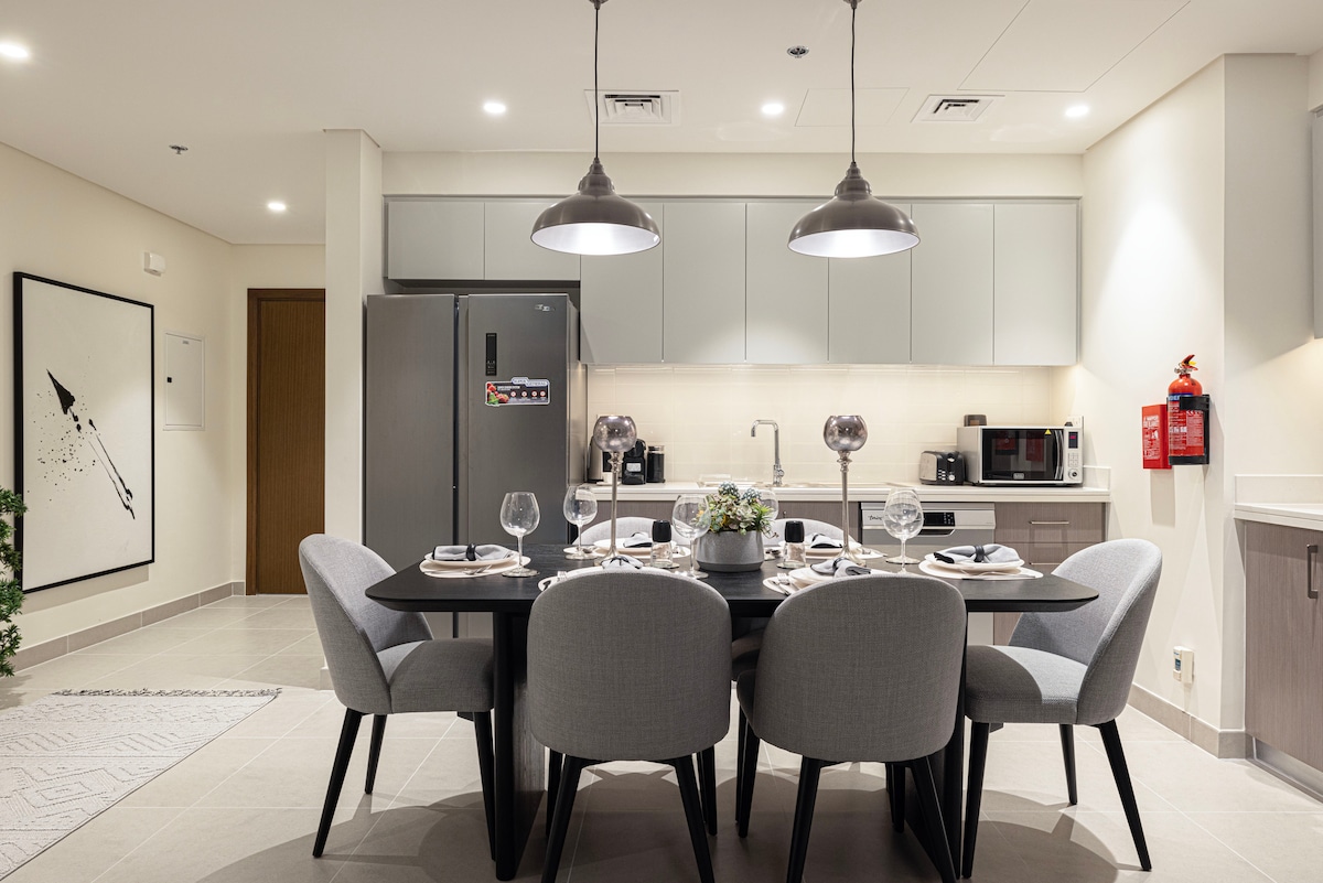 - Revel in expansive balcony views that capture the vibrant energy of the city. - Experience premium entertainment with large Smart TV and gaming console in the lounge. - Cook with ease in a kitchen equipped with all the essentials and modern appliances. - Access to Dubai mall, eateries, and nightlife within a short walk from your doorstep. - Secure your booking now for an unsurpassed urban retreat!