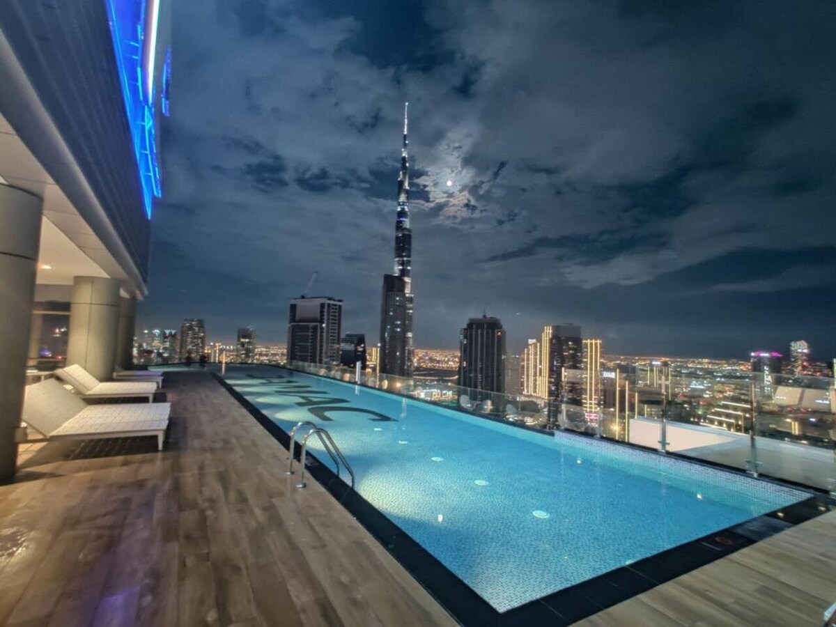 Luxuriöser 2BR mit Panoramablick auf den Burj und dem Infinity-Pool