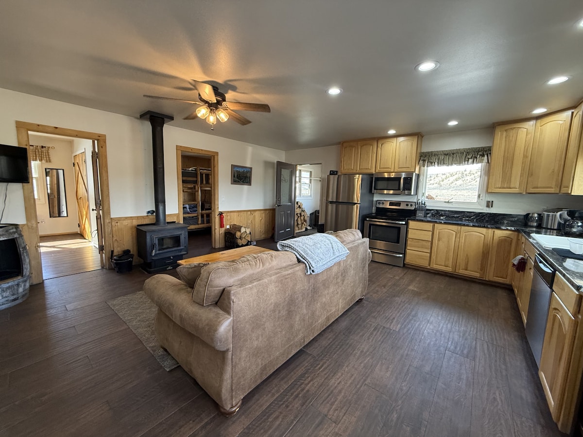 Willkommen in unserem gemütlichen Gästehaus in Pinedale, Wyoming! Eingebettet in eine ruhige ländliche Gegend, nur 5 Meilen von der Stadt entfernt, bietet unser Anwesen eine atemberaubende Aussicht und viel Platz für Familien oder kleine Gruppen, um sich zu entspannen und die Gegend zu genießen. Die Hof- und Spielplatzausstattung bietet die perfekte Gelegenheit für Kinder, sich die Beine zu vertreten und Spaß zu haben. Egal, ob du die Natur erkunden oder einfach nur in einer ruhigen Umgebung entspannen möchtest, unser Gästehaus ist der perfekte Ort, um sich wie zu Hause zu fühlen.