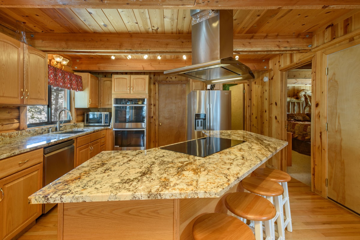 Entfliehe der Stadt in diesem voll ausgestatteten, zentral gelegenen modernen Hütten-Rückzugsort in einer ruhigen Sackgasse. Genieße eine der schönsten Aussichten des Dorfes. Grille auf der hinteren Terrasse, während du ein Glas Wein genießt und die vordere Reihe, den Panoramablick auf das Dorf und die Wiese unten vom Rand der Mesa genießt. Genieße nächtliche Aktivitäten an unserer großen Feuerstelle. 1850 Quadratmeter. Viele Parkplätze. Wanderwege von der Einfahrt aus verfügbar - 100 Meilen. Angeln eine Meile entfernt. Bestes Preis-Leistungs-Verhältnis am Berg!!