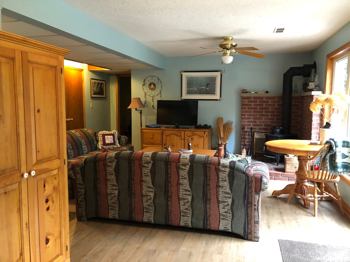 Willkommen in deinem temporären zweiten Zuhause! Separate Wohnung in unserem Haus (930 Quadratfuß). Separater Eingang mit großem Foyer. Zwei Schlafzimmer, eines mit Queensize-Bett und Küche, das andere mit Queensize-Bett, Futon und TV (Sitzecke). Dreiteiliges Badezimmer mit ebenerdiger Dusche. Jede Menge Parkplätze. Durchgehend Hartholzböden. Spektakuläre Aussicht und 2 Feuerstellen zur Nutzung. Bitte siehe Bilder. Haustiere sind nicht erlaubt.