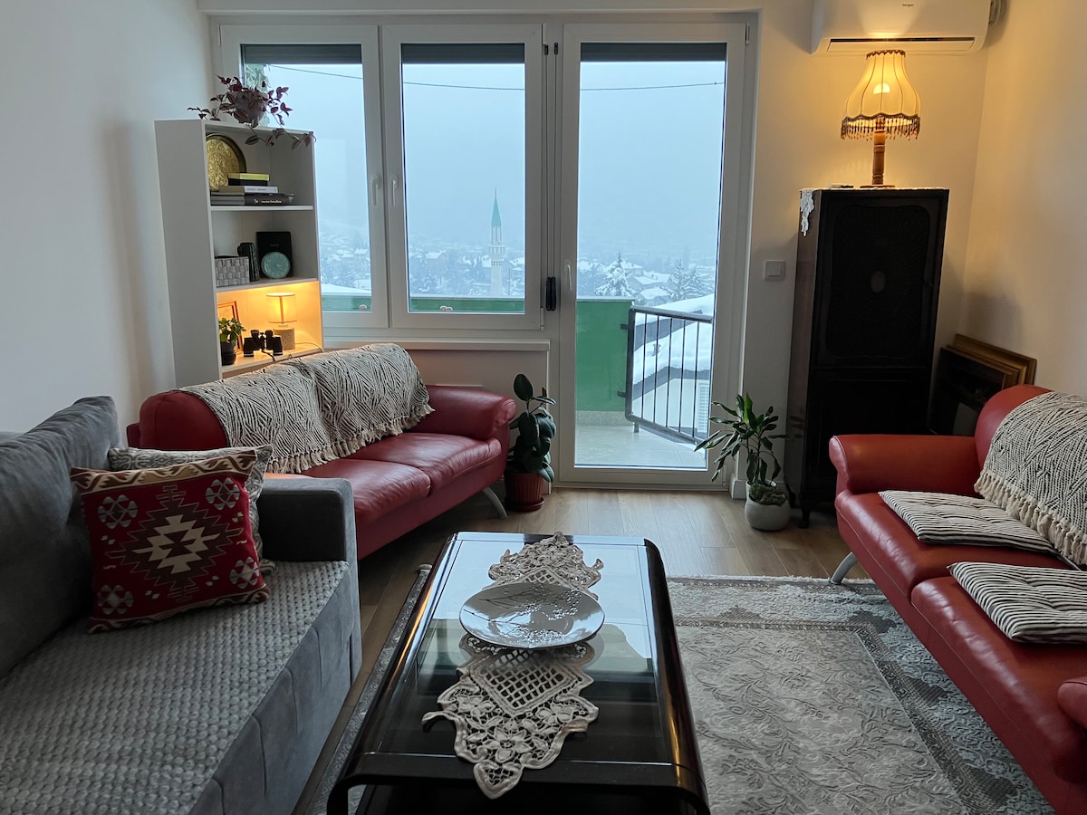 Willkommen in unserem gemütlichen Stadthotel im Herzen von Sarajevo. Nur 5 Gehminuten von der Hauptfußgängerzone und historischen Sehenswürdigkeiten entfernt, ist dieses versteckte Juwel ideal für Paare, Freunde oder kleine Familien. Das Highlight? Eine geräumige Dachterrasse mit herrlichem Blick auf die Stadt und die umliegenden Hügel. Bitte beachten Sie: Die Wohnung befindet sich im 5. Stock ohne Aufzug, was ihr ein ruhiges, verstecktes Gefühl verleiht — erfordert aber ein wenig Aufstieg.