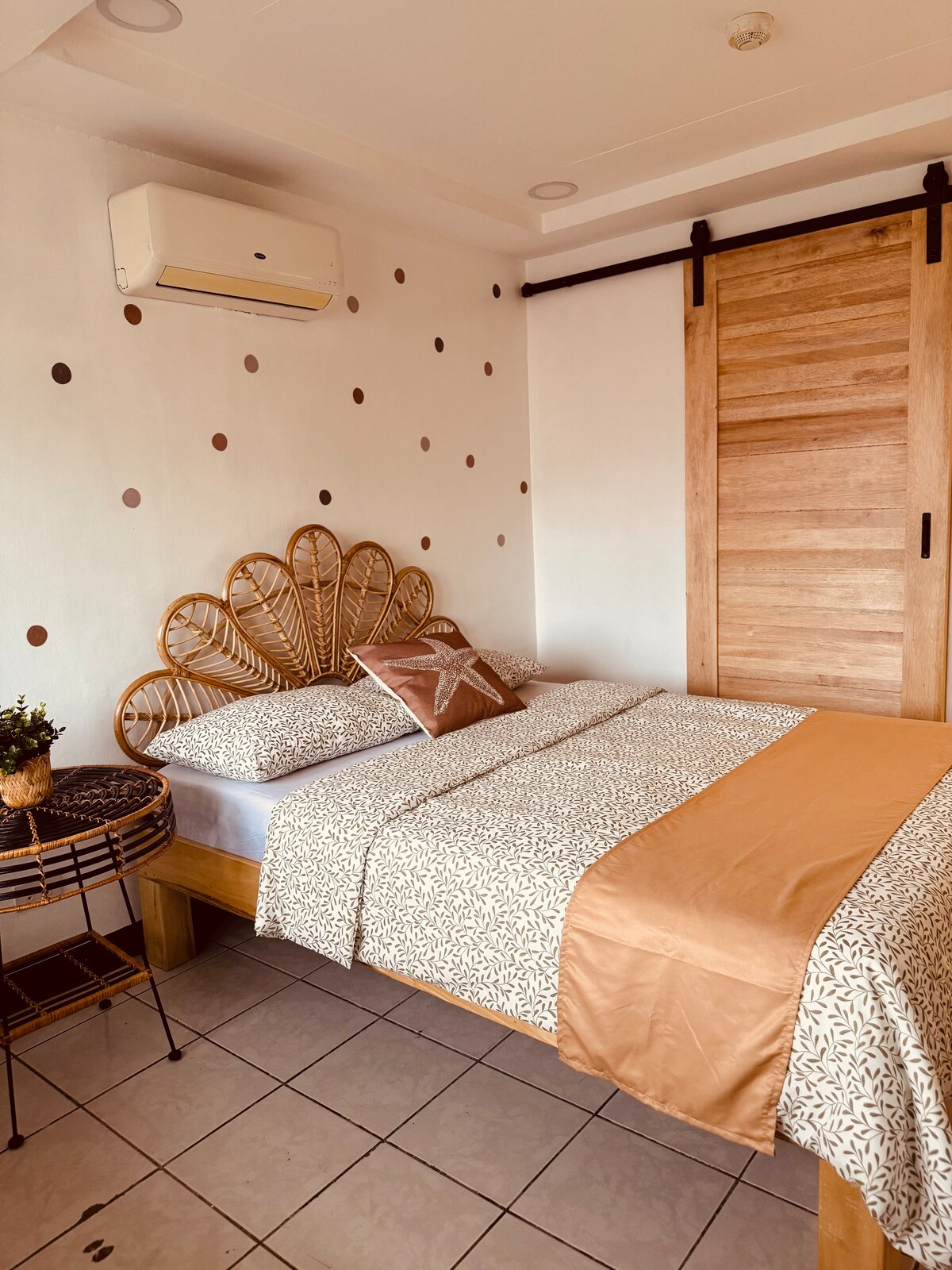 Kombination aus einheimischem und modernem Hausdesign, gut beleuchtet, belüftet und kühl. Ein 3-minütiger (150 m) Spaziergang zu einem sauberen grauen Sandstrand mit lebendigen bunten Korallenriffen. Du musst jedoch Hausschuhe tragen, da es jede Menge Felsen gibt. Die Ventilatoren sind komfortabel genug, da es viel Brise gibt, die vom Meer kommt, und das Grundstück ist von Bäumen und Pflanzen umgeben. Etwa 25 Minuten pendeln in die Stadt mit Jeepney oder Dreirad.