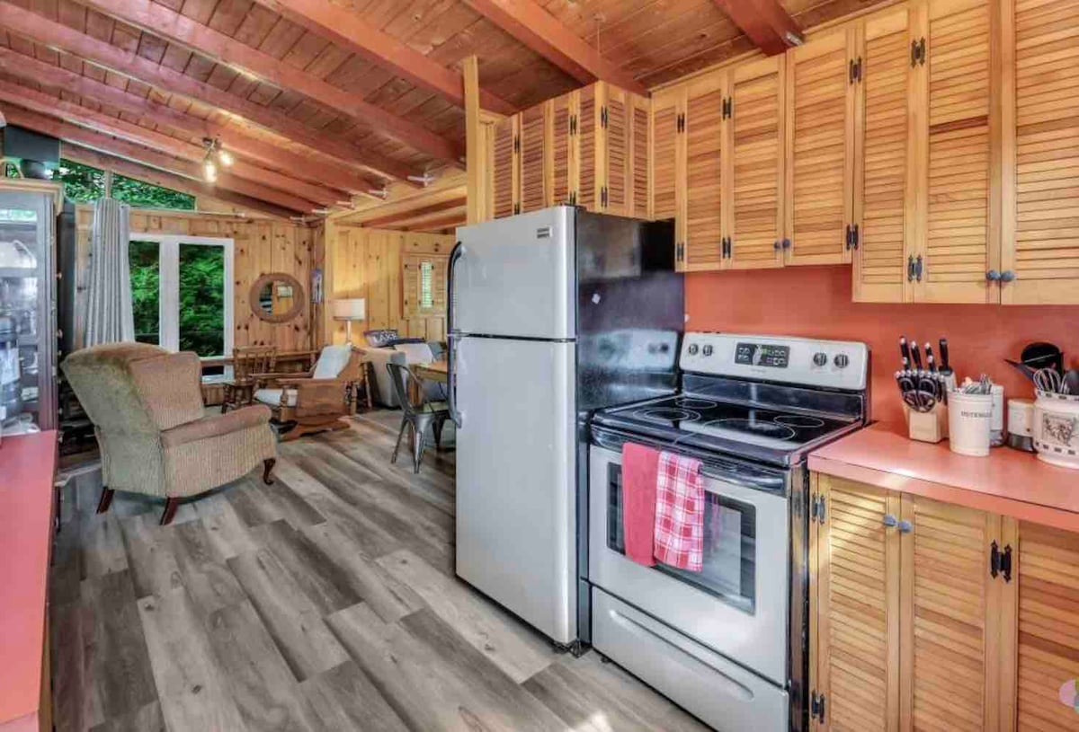 Nouvelle construction! Cette propriété dispose d'un espace ouvert de 1400 pc avec deux chambres et deux salles de bain complètes. Le logement se trouve sur un terrain privé traversé par une rivière. Avec ses fenêtres surdimensionnées, 3 terrasses extérieures entièrement équipées entourées de nature et d'arbres cette villa de luxe est synonyme de confort et de connexion à la nature. Vous aurez aussi accès a un spa extérieur privé! L'escapade romantique idéale!