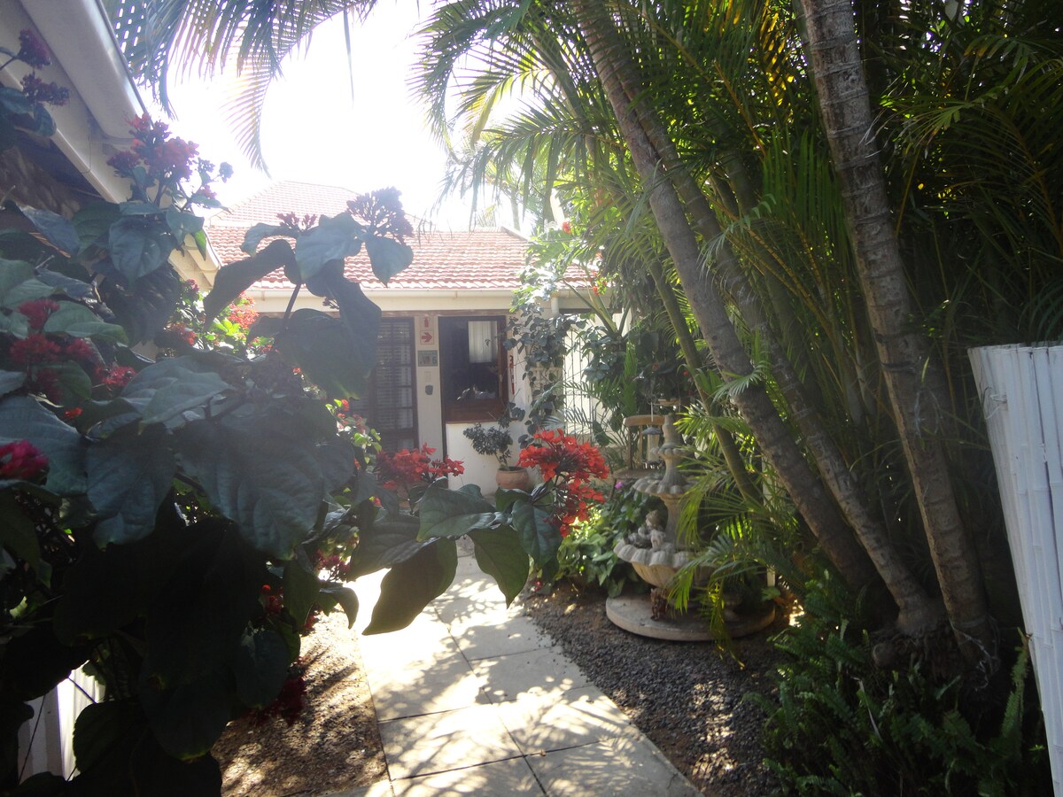 Gehobenes Zimmer im 4-Sterne-Bett und Frühstück in einem ruhigen Viertel in Durban North, einfacher Zugang zur M4 und nur wenige Gehminuten von Geschäften mit Restaurants und Aways im Zentrum von Durban North entfernt. Nicht weit von den Stränden von Umhlanga und Durban und dem Moses-Mabhida-Stadion entfernt. Die Flughäfen King Shaka und Virginia sind leicht zu erreichen. Leider beherbergen wir keine Kinder unter 12 Jahren.