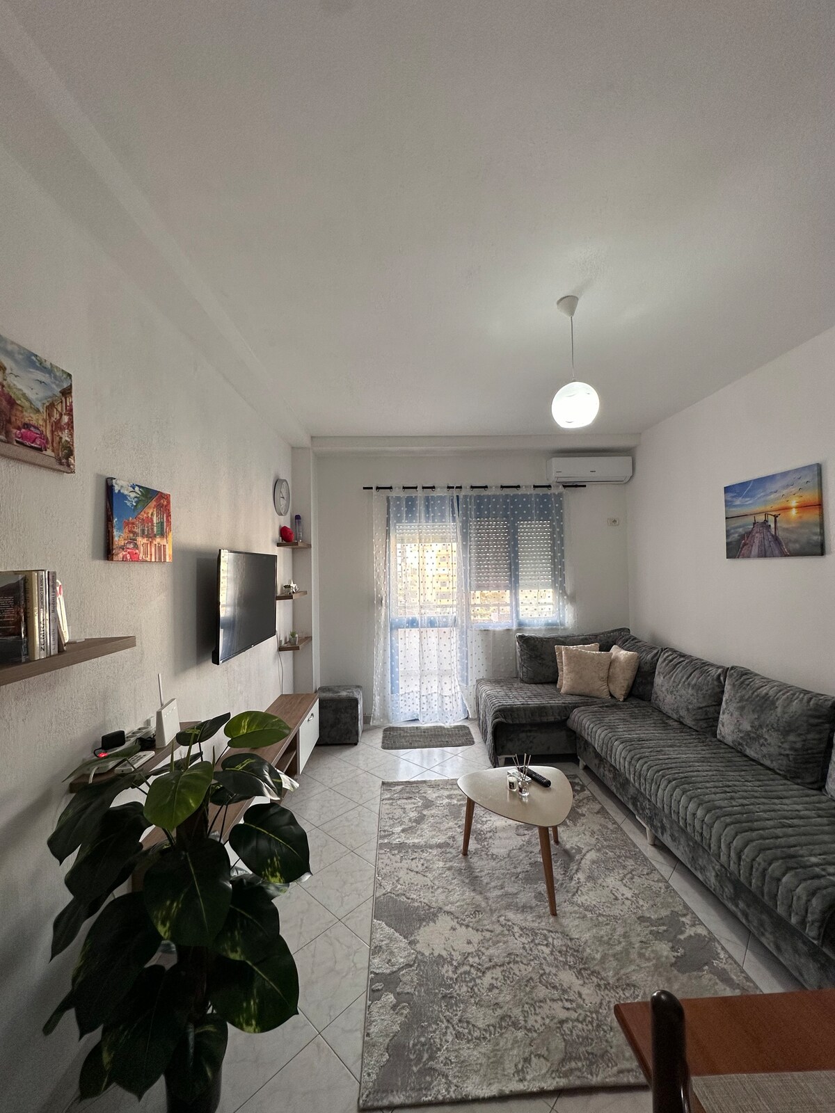 Welcome to Coastal Charm Durrës, your relaxing beach escape just 50 meters from the sea in the vibrant "Long-Beach" area of Durrës! Located on the first floor of a modern residential building, this stylish 1-bedroom apartment offers the perfect blend of comfort and convenience — ideal for couples, families, or small groups of up to 4 guests. Surrounded by cafés, restaurants, supermarkets, and summer activities Quick access to public transport and 35 minutes to Tirana Airport.