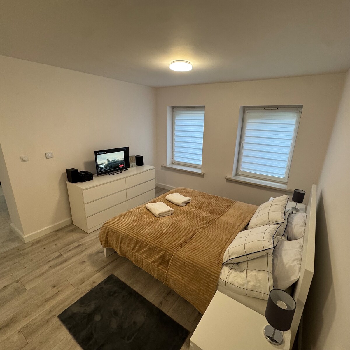 Wir bieten unseren Gästen eine Zwei-Zimmer-Wohnung im Stadtzentrum, etwa 30 m vom Marktplatz entfernt. Die Wohnung besteht aus einem großzügigen, hellen Schlafzimmer mit zwei komfortablen Einzelbetten (mit der Möglichkeit, sie zu kombinieren), Wohnzimmer, mit Klimaanlage , offen zu einer vollausgestatteten Küche, Flur und Bad mit Waschmaschine. Im Wohnzimmer befindet sich unter anderem ein komfortables Doppelschlafsofa mit Schlaffunktion.