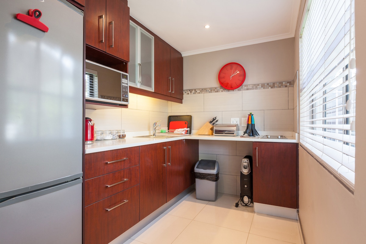 Escape to the suburbs . 1km to Trendy Parkhurst/ParktownNorth shops & restaurants, 2kms to Rosebank.Own secure Parking.Good Security. Equipped kitchen onto lounge. Upstairs bedroom en suite full bathroom,plus separate guest loo downstairs.Unlimited fibre wifi,available as well as during blackouts.Large pool.Park run 2kms away at Delta Park .