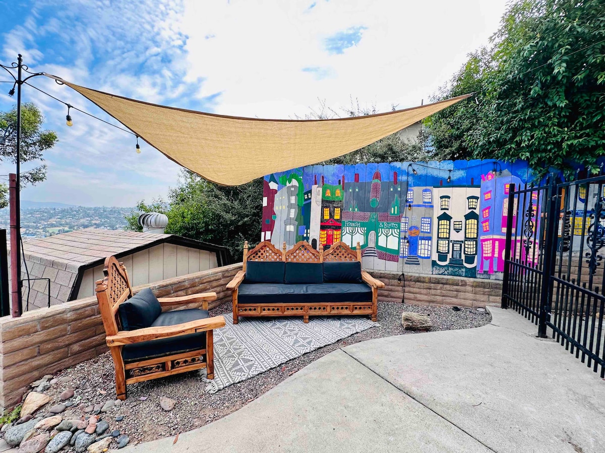 * Vergiss deine Sorgen in diesem schönen 700 Quadratfuß großen, geräumigen und ruhigen Raum. *Komm und genieße das künstlerische Flair dieser neu renovierten großen Gästesuite, die sich ideal in der Mitte der Stadt in der Nähe von SDSU befindet. Roll aus dem Bett und genieße eine Tasse Kaffee auf der privaten Terrasse und erkunde dann ALLE Top-Attraktionen der Stadt, die nur eine kurze Autofahrt entfernt sind. Dieser schöne Raum ist sauber, frisch und vollständig mit großartigem Stil eingerichtet, einzigartig kuratiert mit Originalkunst von einem der etabliertesten Künstler von SD. * Viel Spaß*