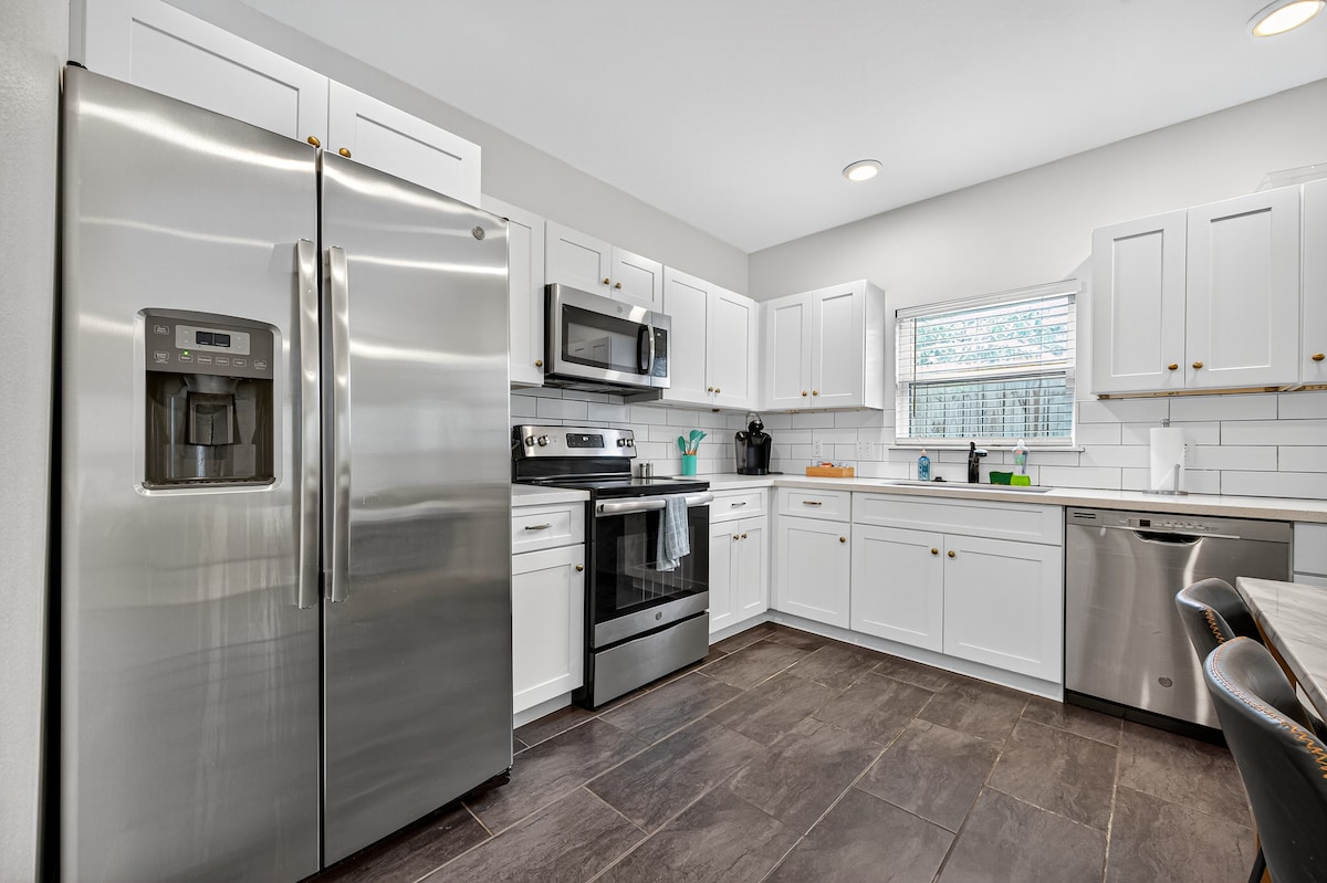 Willkommen in unserer modernen Midtown-Wohnung! Dieses geräumige Haus mit 3 Schlafzimmern und 2,5 Bädern liegt im Herzen von Houstons florierendem Midtown-Viertel und ist perfekt für größere Gruppen oder Familien. Nur wenige Schritte von erstklassigen Restaurants, Bars und Geschäften und eine kurze Fahrt von Downtown entfernt, ist diese Wohnung so konzipiert, dass sie deinen Aufenthalt komfortabel und bequem macht – egal, ob du geschäftlich, privat oder für einen Urlaub in Houston zu Besuch bist.