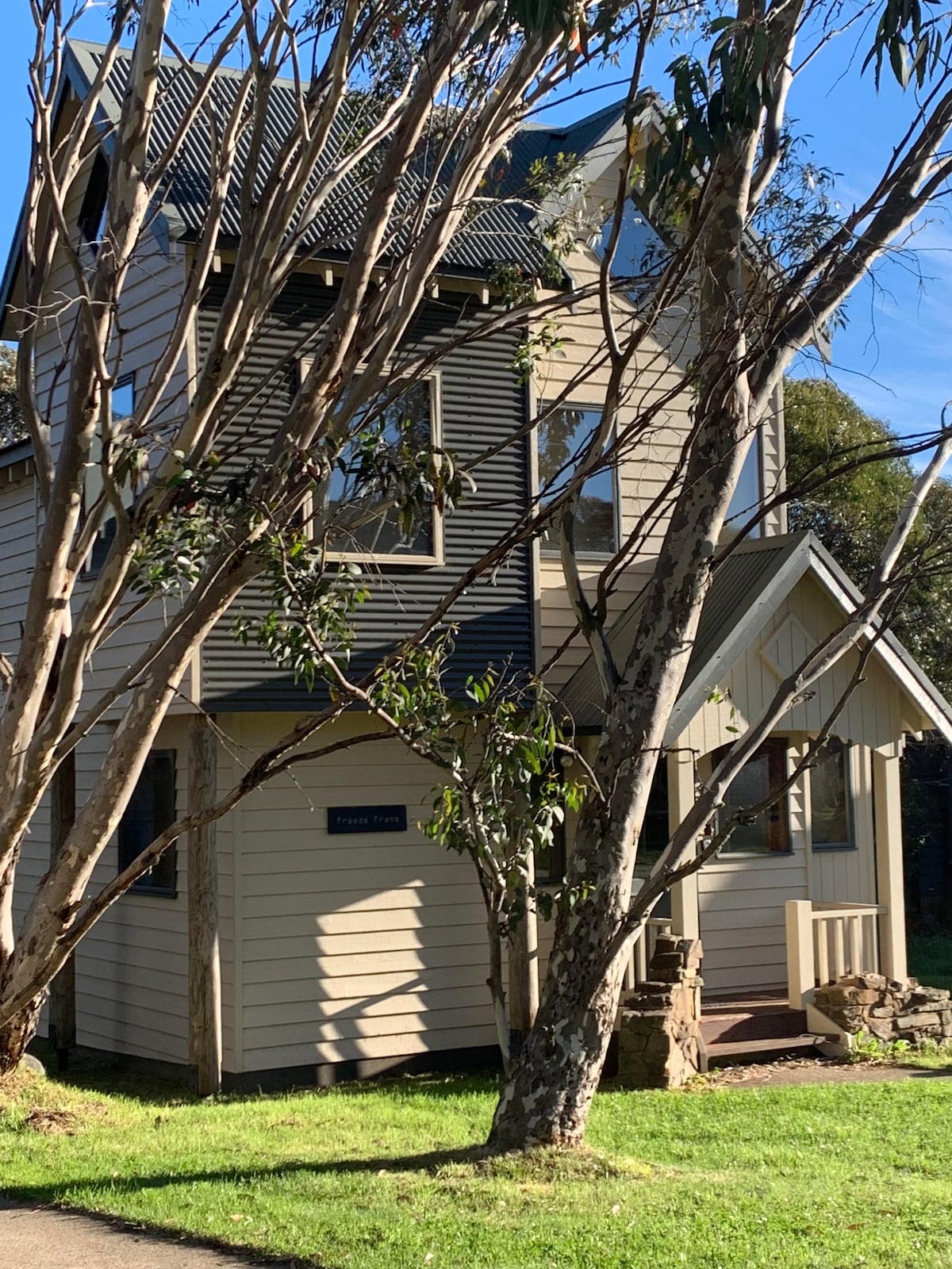 Freeze Frame ist ein wunderschön präsentiertes, zweistöckiges, freistehendes Chalet. Das Hotel liegt im Reservat mit Blick auf die Dargo High Plains. Schlafplätze für maximal sechs Personen. Zwei Schlafzimmer, eines mit einem Queensize-Bett und das andere Schlafzimmer mit zwei Etagenbetten. Ein einfacher Spaziergang zu allen Annehmlichkeiten. Starlink-Internet verfügbar. Bring deine Lieblingskaffeekapseln für die Nespresso-Maschine mit. Geeignet für einen Familien- oder Paarurlaub. Freeze Frame hat alles, was du für einen wunderbaren Urlaub in Dinner Plain benötigst.