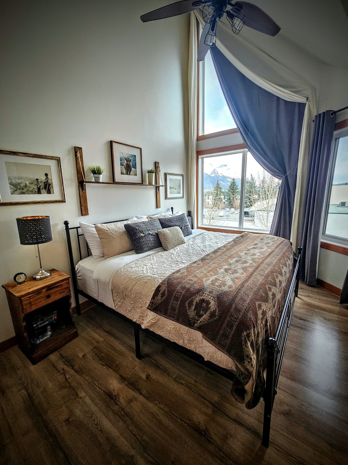 Dein Rocky-Mountain-Abenteuer beginnt stilvoll in dieser wunderschönen 1-Zimmer-Penthouse-Wohnung in der Rundle Cliffs Lodge, Spring Creek Mountain Village. Hohe Kathedralendecken mit einer atemberaubenden Aussicht, die den geräumigen Wohnbereich und den schönen Steinkamin umrahmt. Koche in der makellosen Küche. Entspanne dich in der riesigen Badewanne oder kuschele dich in luxuriöse 5*-Hotelbettwäsche im Queensize-Schlafzimmer. Alles nur wenige Schritte entlang einer malerischen Promenade von den Restaurants, Bars, Cafés und Einkaufsmöglichkeiten in der Innenstadt von Canmore entfernt.