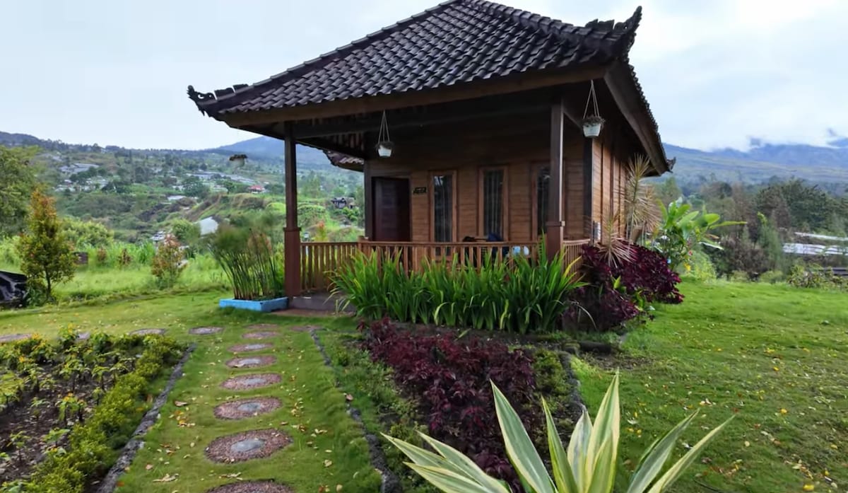 Enjoy comfort and tranquility in the heart of Tetebatu. Rinjani ranch is nestled between vanilla groves and rice fields, and on clear days, boasts a view of Rinjani volcano. Stay with us, and enjoy; - Comfortable furnishings - Pagoda and fire pit - Fresh, clean water sourced on-site - Outdoor kitchen - Ensuite bathroom including shower - AC - On-site parking - Walking distance from Durian Indah and Sarang Walet waterfalls as well as Monkey Forest