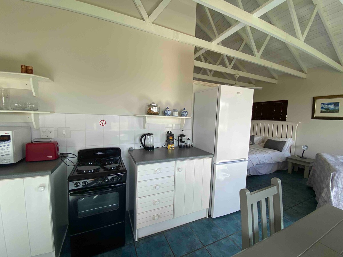 The Beach Cottage is a self-catering cottage on a working dairy farm within walking distance to the beach. It is only 10km from the EL airport and a 20 minute drive into EL. The cottage has beautiful views of the sea as well as of cows grazing on green pastures. It has a fully functional kitchen. Tea, coffee, fresh farm milk & rusks are provided on arrival. It is good for couples, solo adventurers, business travelers, and families. Please note, own transport advisable as we are on a farm.